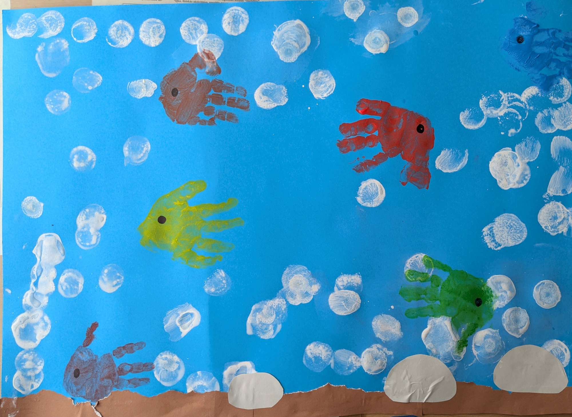 Veidojot darbu, bērni iepazina ūdens vidi un tās iemītniekus, attīstīja pirkstu kustības, radošumu un darbošanās prieku. Darbs atspoguļo bērnu pirmo pieredzi dabas pasaules iepazīšanā un draudzību ar ūdens iemītniekiem.