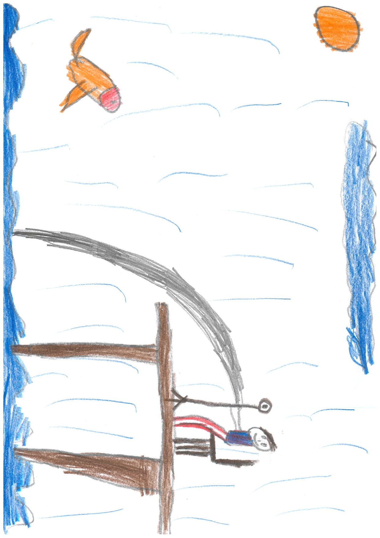 Mans tētis ir makšķernieks. Tētis skatās tālskatī, lai ieraudzītu zivis. Un tad viņš met tīklu upē.
