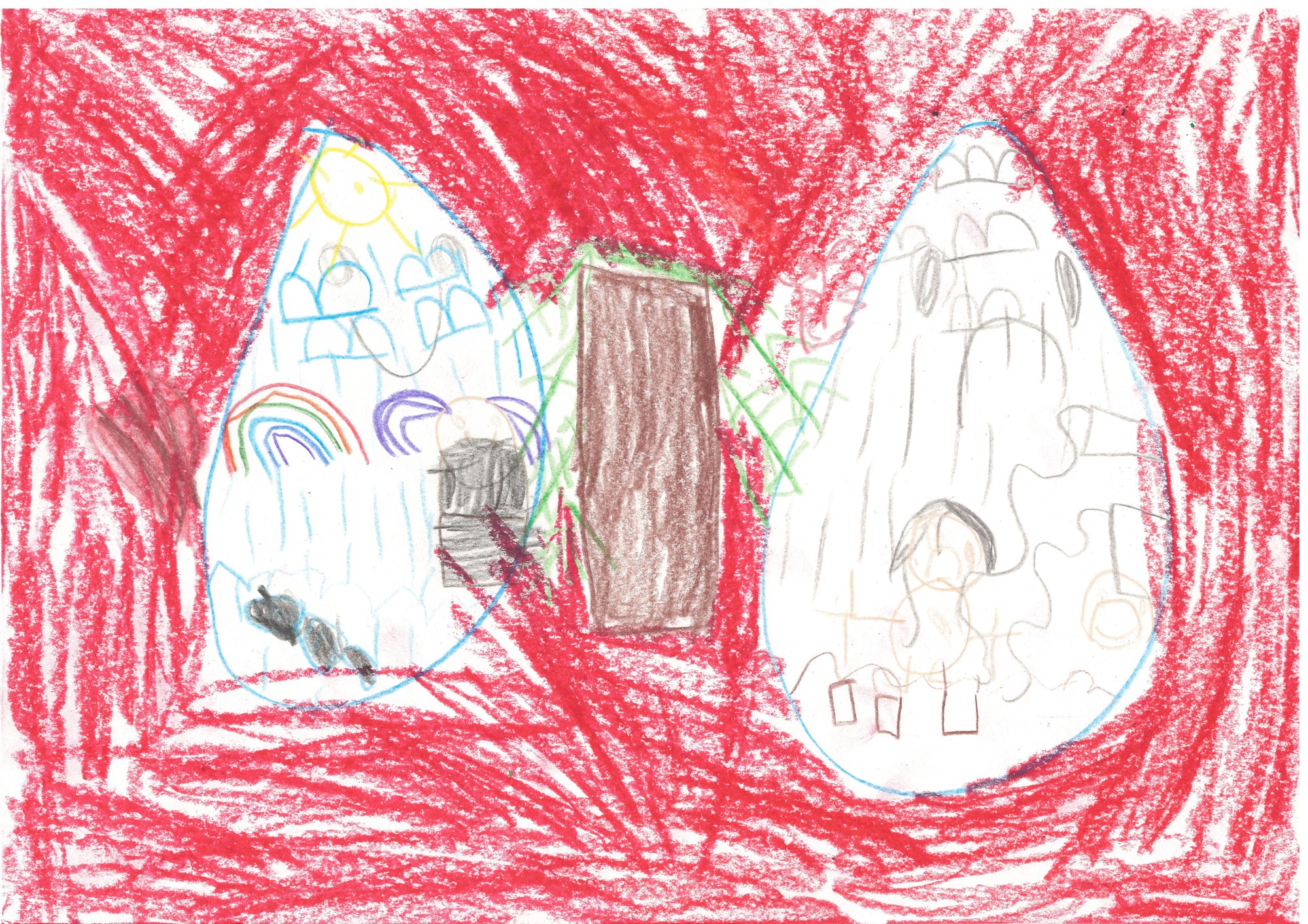 Šajā zīmējumā bērns atklāj ūdeni kā dzīvu un jūtīgu dabas daļu, kurai var būt divas sejas: priecīga un skumja. Savā darbā bērns attēlo kontrastu starp tīru, dzīvību dodošu ūdeni un piesārņotu, apdraudētu vidi.