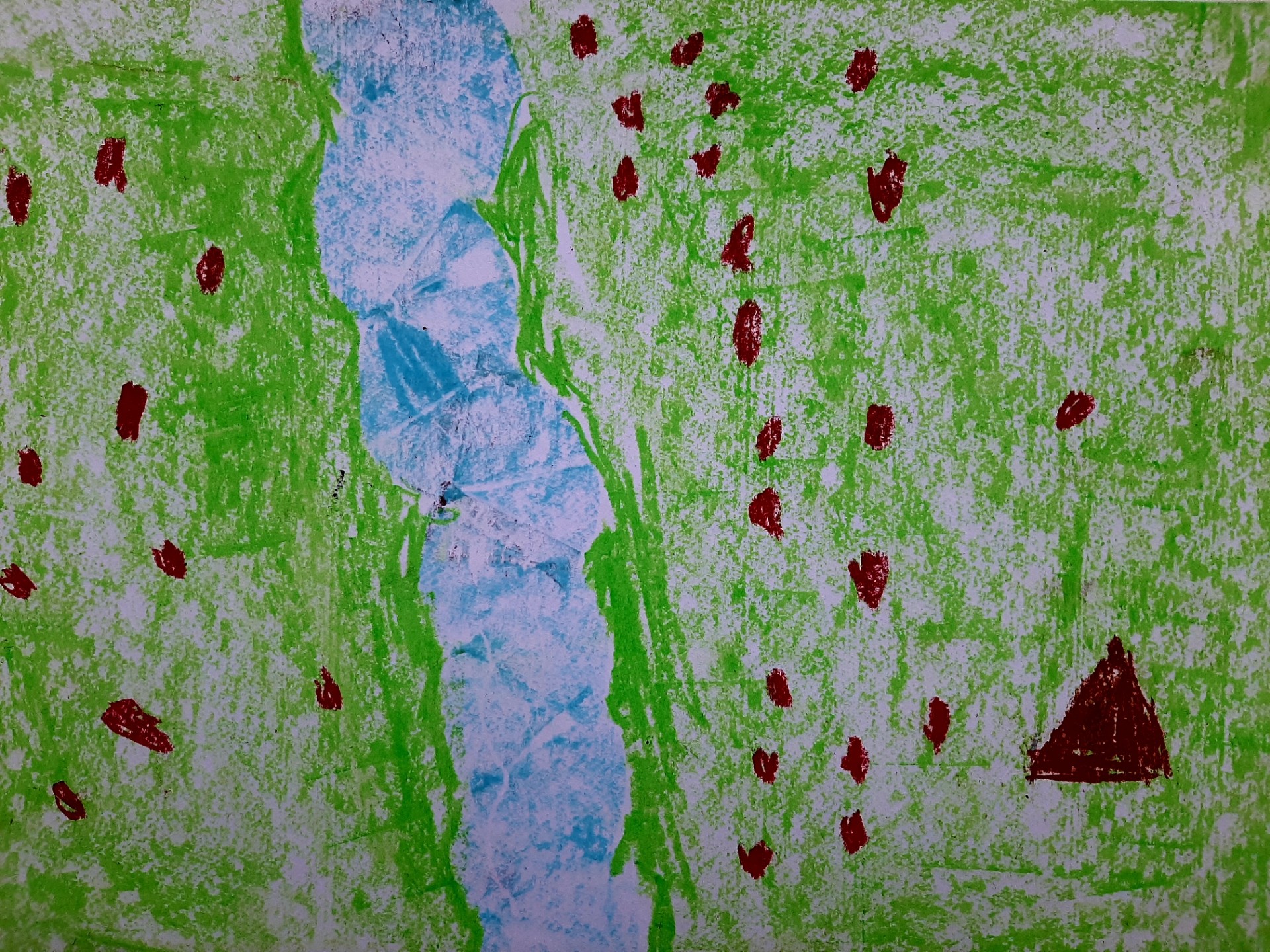 Burbuļodama strauja upīte tek caur pļavu. Man patīk rotaļāties pie upītes.