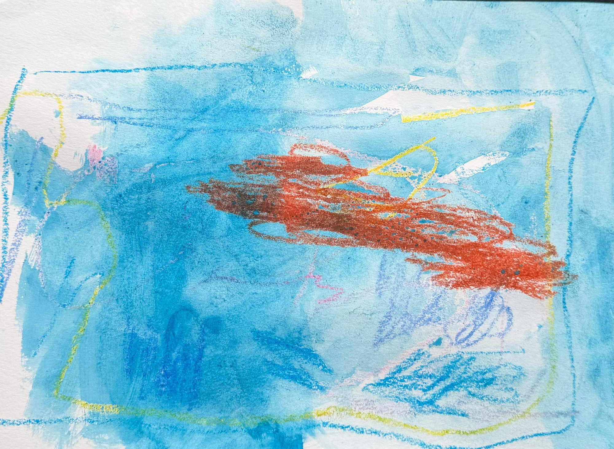 Darba autors iedvesmojies no akvārija, kas ikdienā ar saviem ūdens piedzīvojumiem ir gan prieka avots, vērojot zivtiņas un gliemežus, gan mierpilna vieta, kur atpūsties. Zīmējumā jūtama ūdens plūduma vieglums, līganās ūdenszāles un burbulīšu čaloņa. Darbs veidots jauktā tehnikā – ar krītiņiem un akvareli.