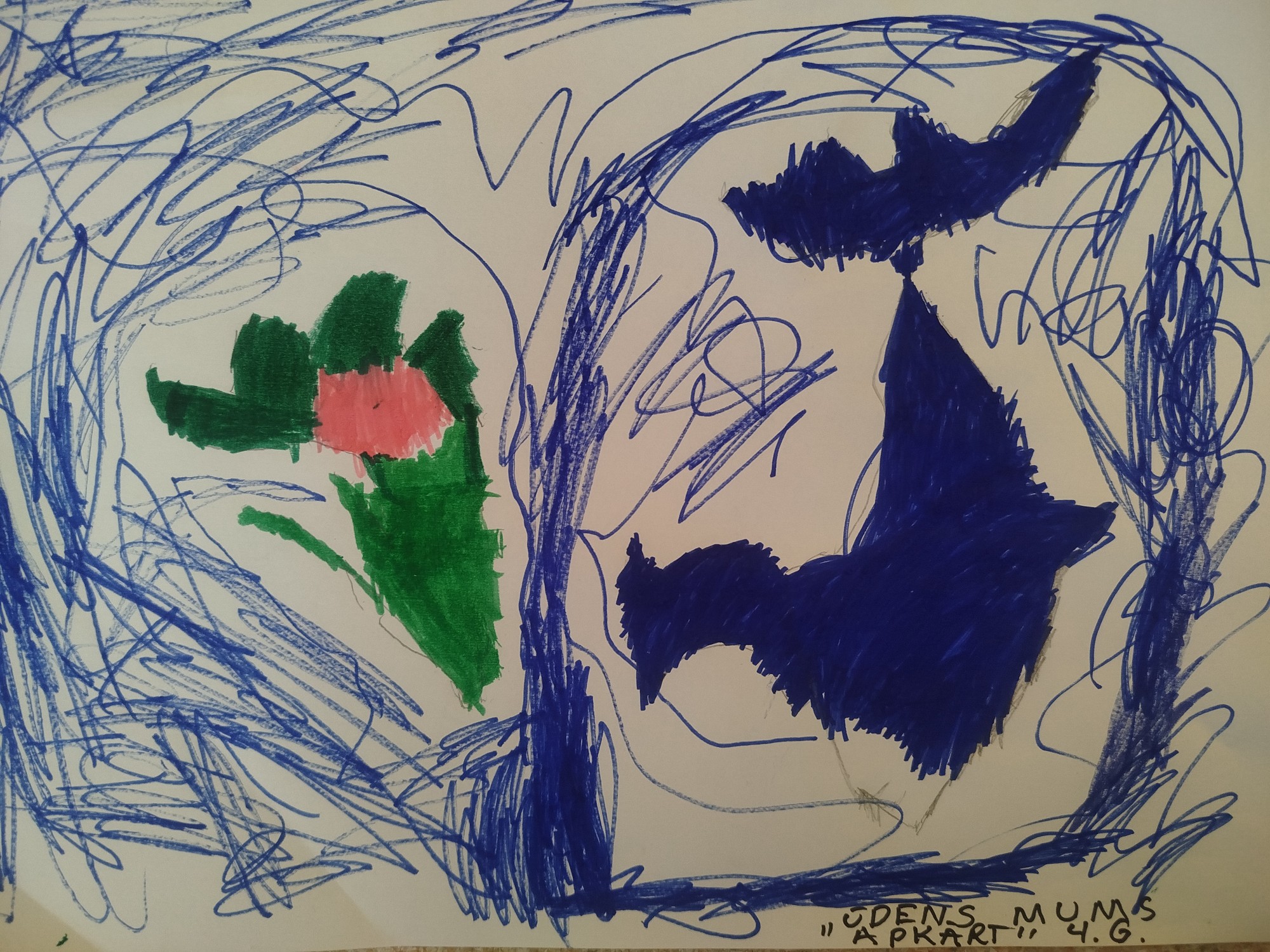 Flomasteru krāsās autors radījis priekšstatu par to, cik ūdens ir svarīgs dabai (augiem, zivīm utt )