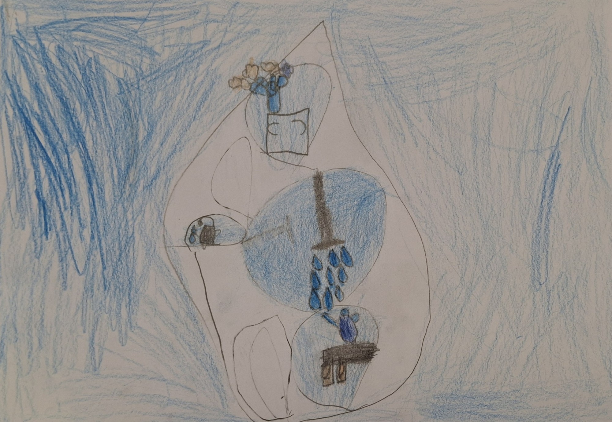 Ūdens tek no krāna un mēs dzeram ūdeni.