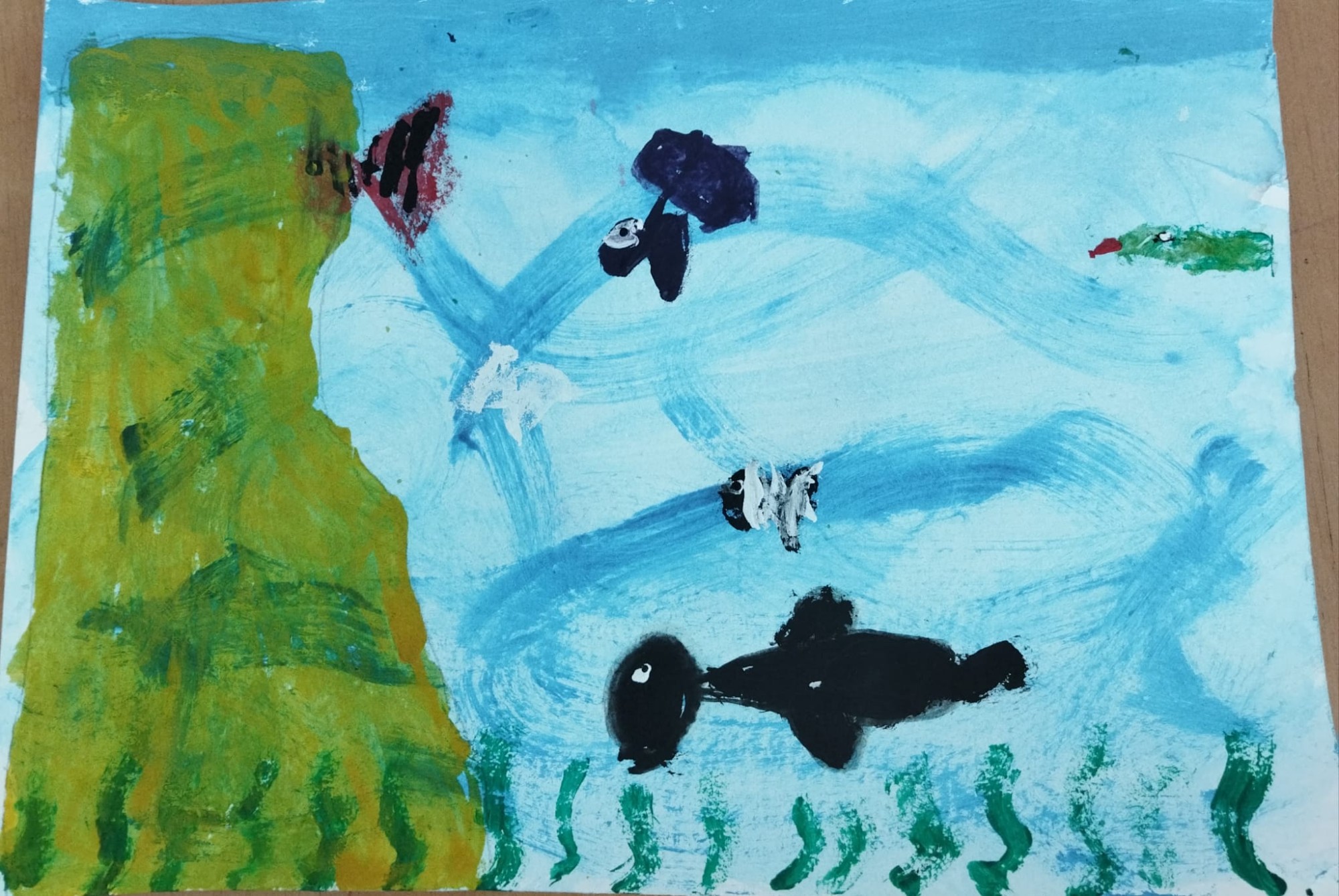 Darbs ar guašas un akvareļkrāsām.