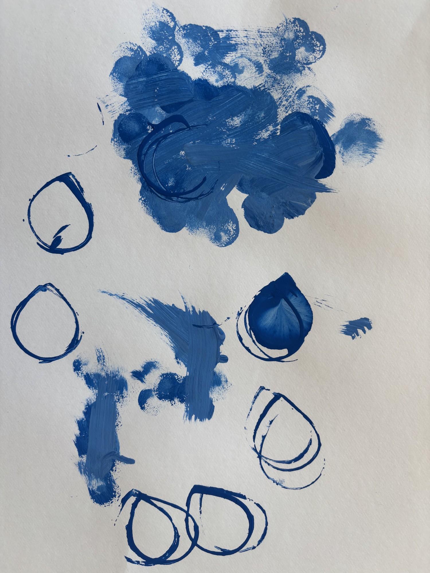 Bērns, izmantojot guaša krāsas, attēloja ūdenī radušos riņķus un viļņus. Izmantojot otu, tualetes papīra rullīti un švammes otiņu, radīti dažādi apļveida nospiedumi un līnijas, kas simbolizē ūdens kustību.