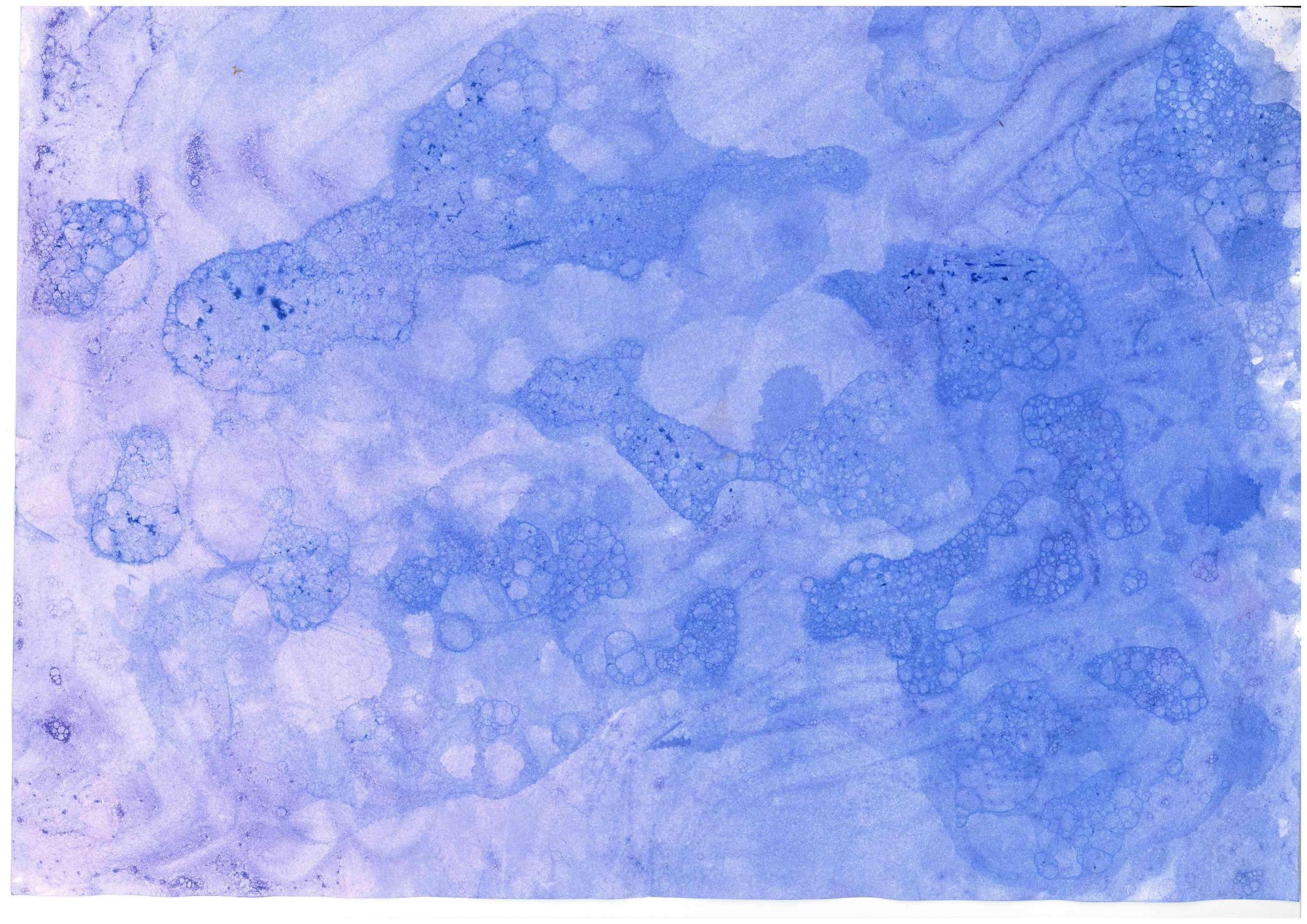 Bērni darbojās ar guašu, ūdeni un trauku mazgājamo līdzekli, veidojot burbulīšu rakstus uz papīra un iepazīstot ūdens burvību.