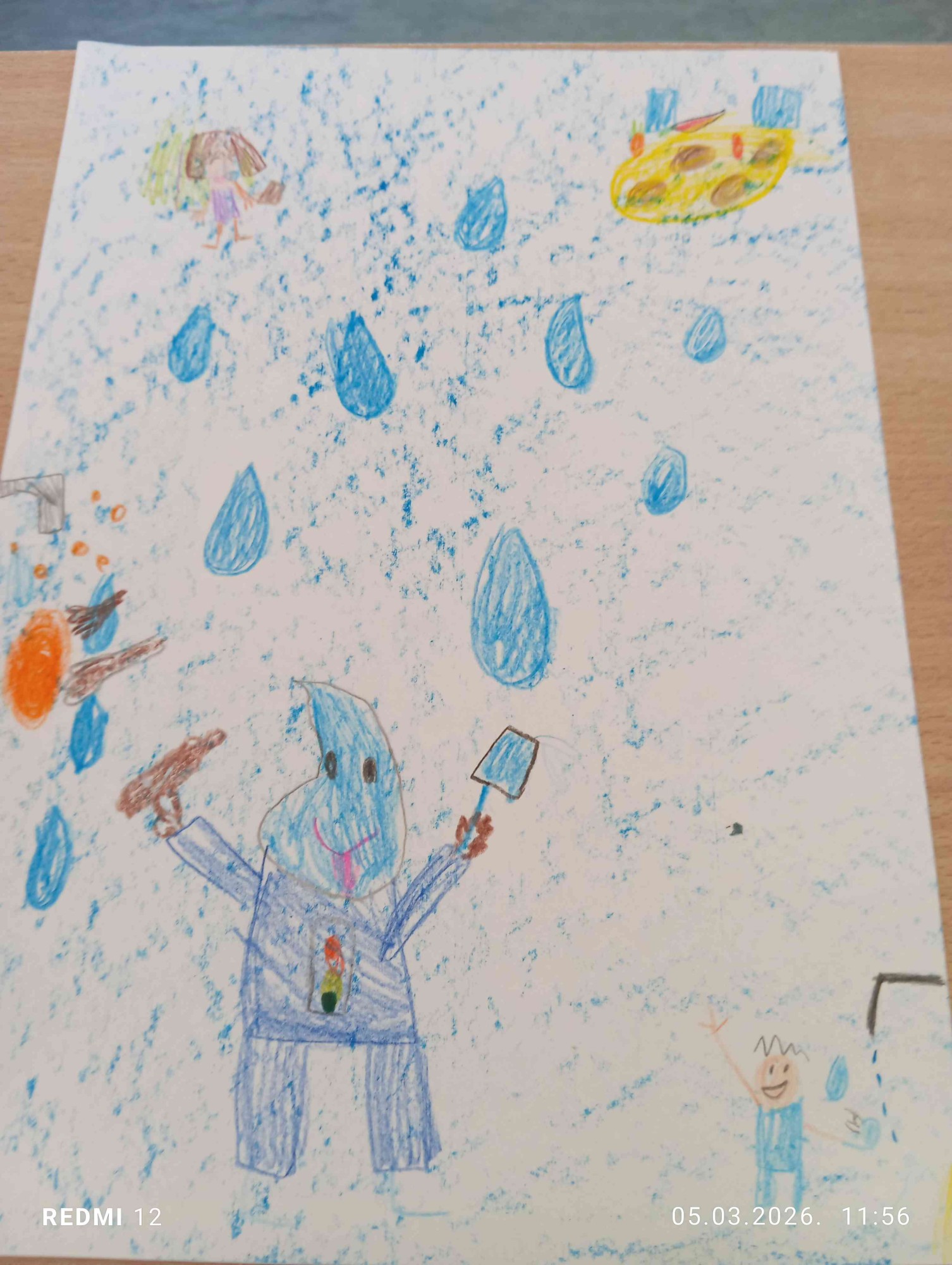 A4 lapa, zīmēts un krāsots ar krāsainajiem zīmuļiem un vaska krītiņiem.