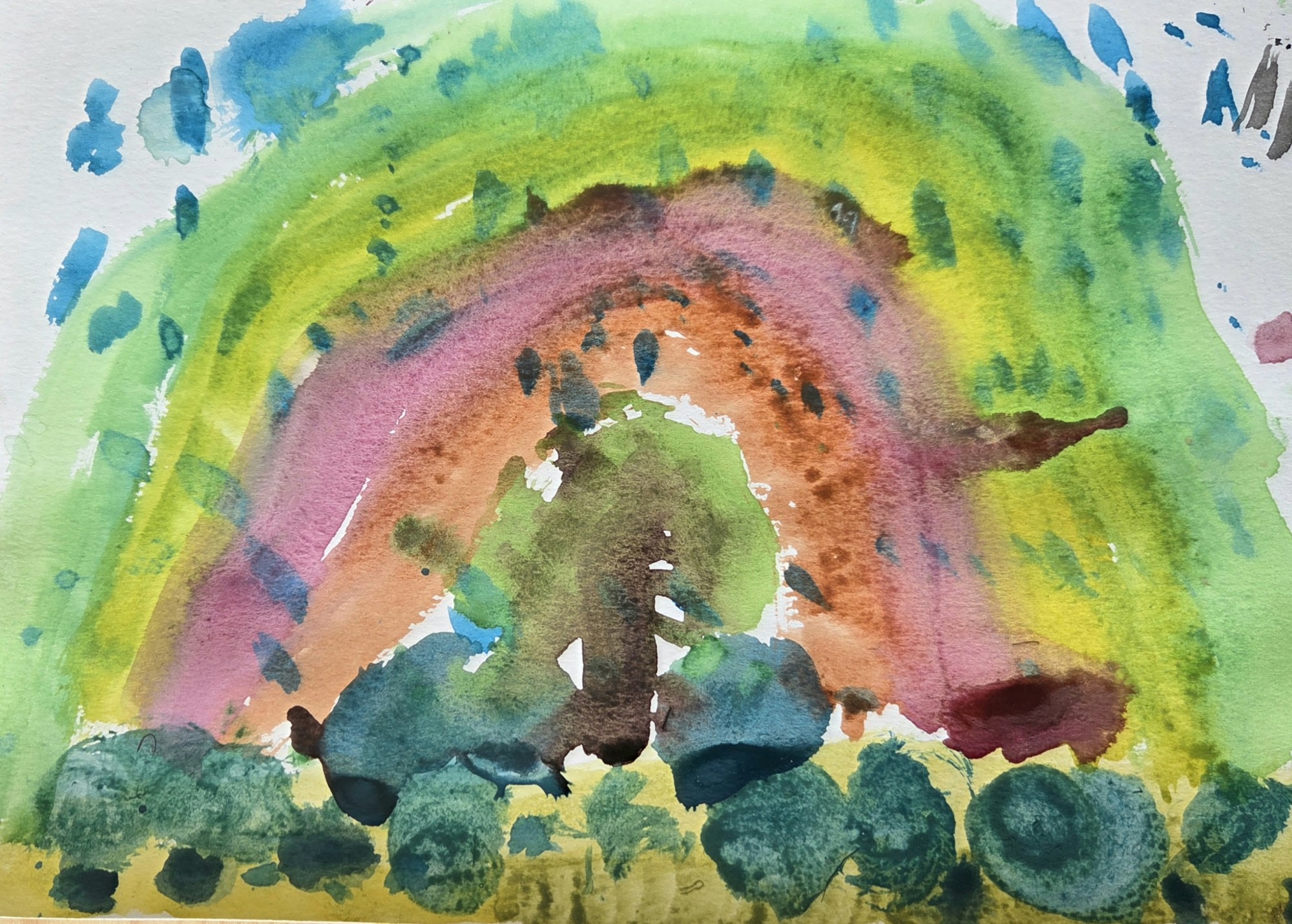 Pēc spēcīga negaisa pie debesīm manīju krāšņu varavīksni. Tā apspīdēja manu mīļāko koku - ozolu.
