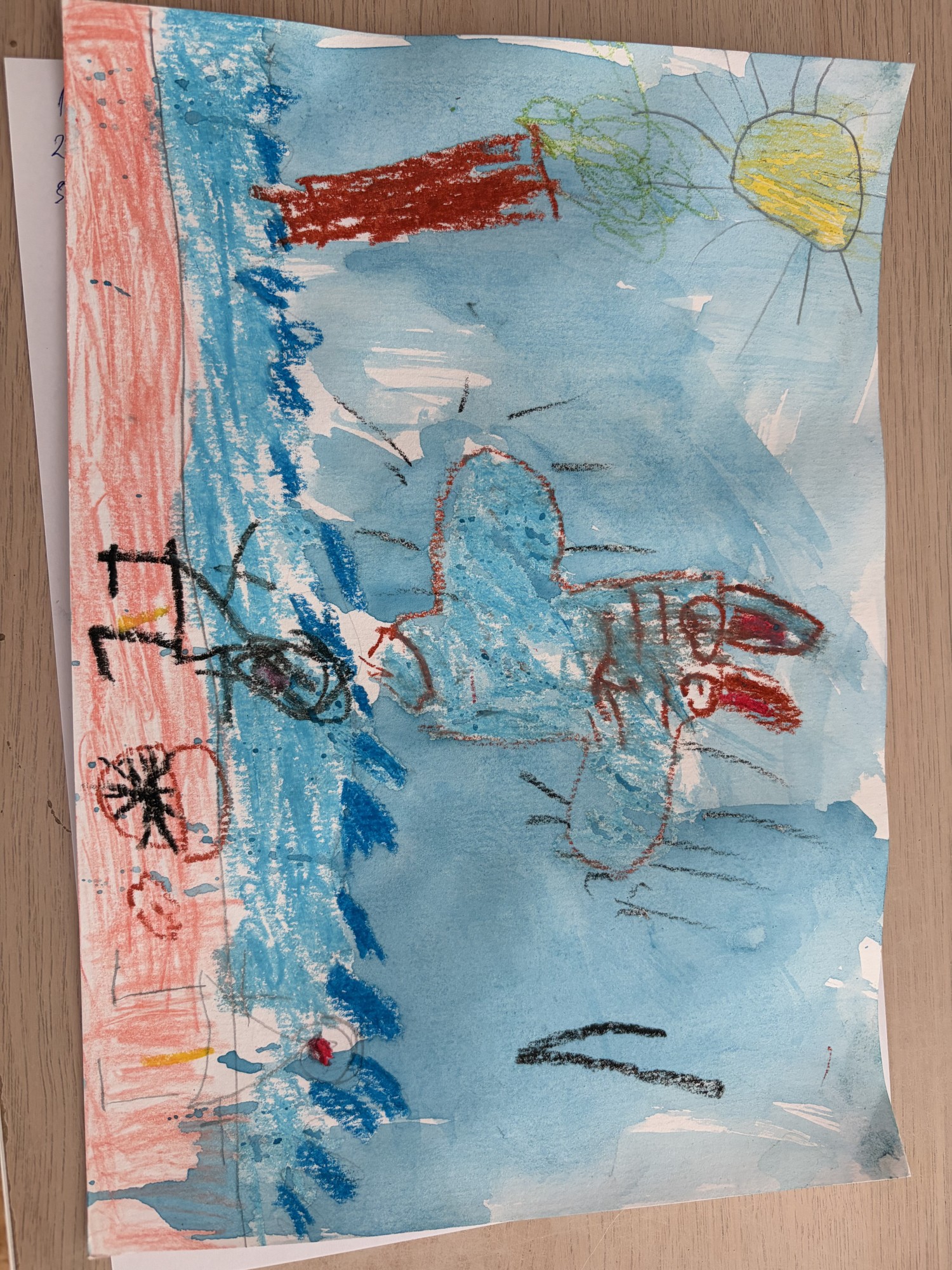 Zīmējumā attainota Kate ar savu mammu pie jūras, viņas ir priecīgas, jo tur var peldēties, pētīt ūdens dzīvību.