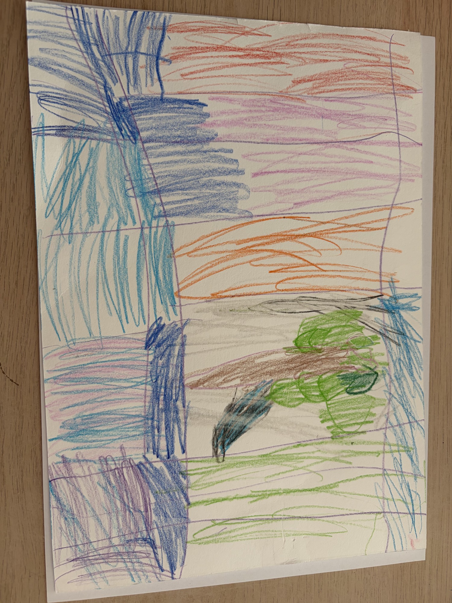 Zīmējumā attēlots koks, kurš aug ar ūdeni aplietā zemē, tas aug stiprs un liels.