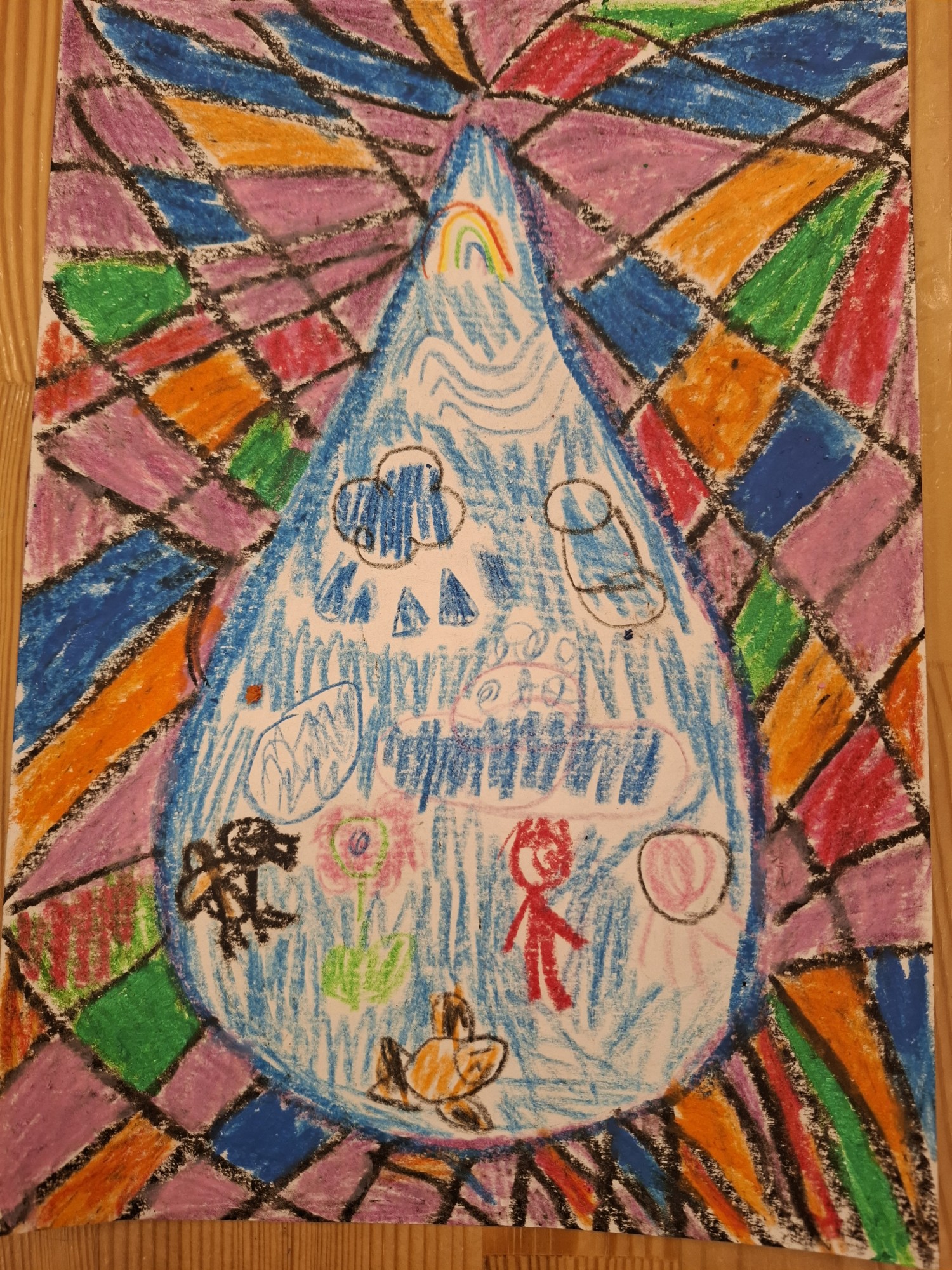 Zīmējumā attēlots, kam vajadzīgs ūdens - gan cilvēkiem, gan dzīvniekiem, gan augiem.