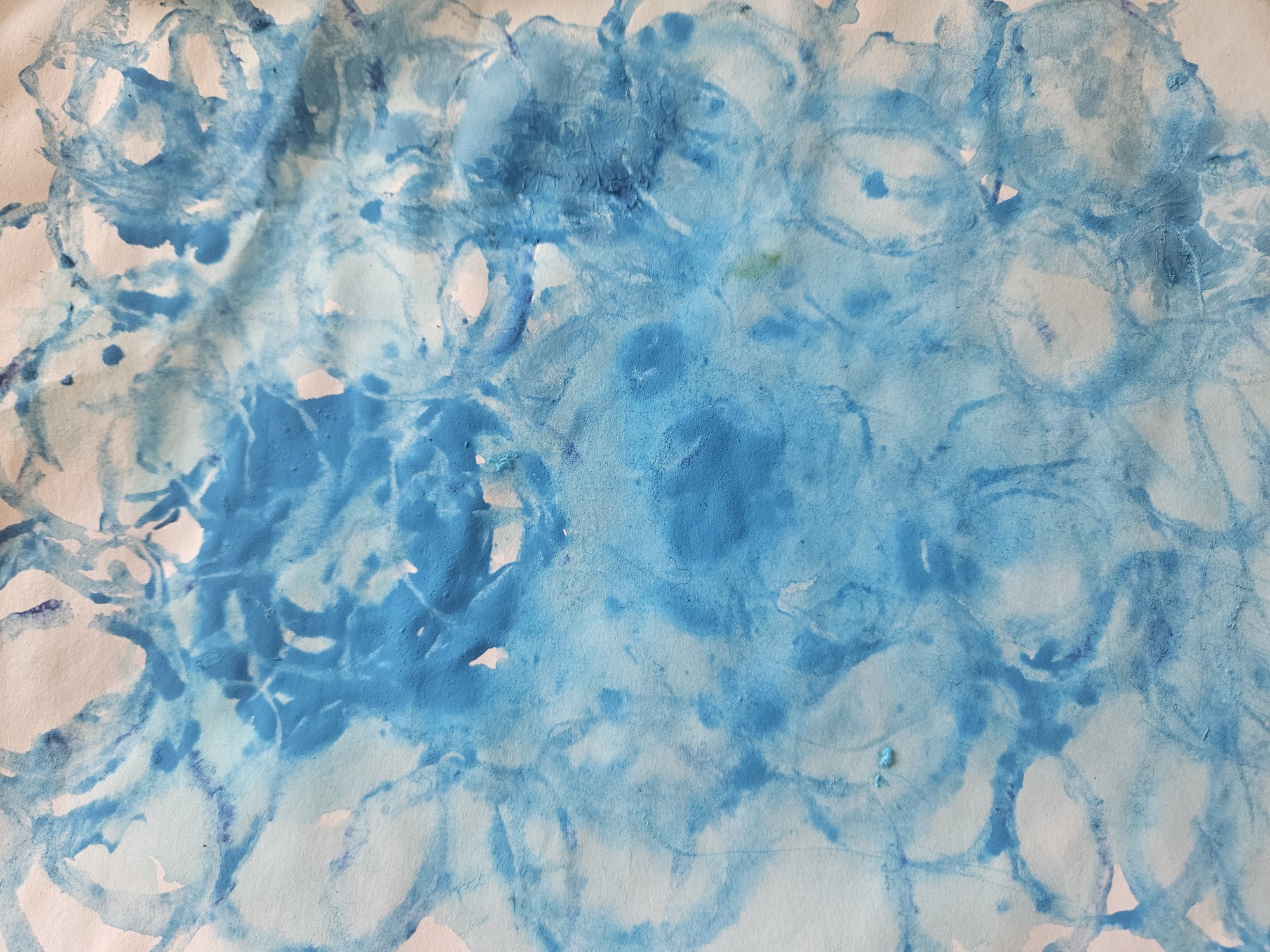 Ūdeni ir daudz burbulīšu. Man patīk spelēties ar ūdeni.