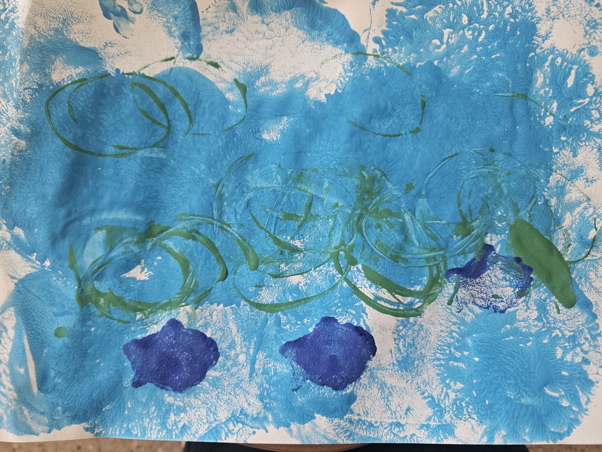 Manā jūrā zivtiņas māk dejot! Viņas griežas un griežas, taisot apaļus, zaļus burbuļus. Ūdens šļakstās visur!