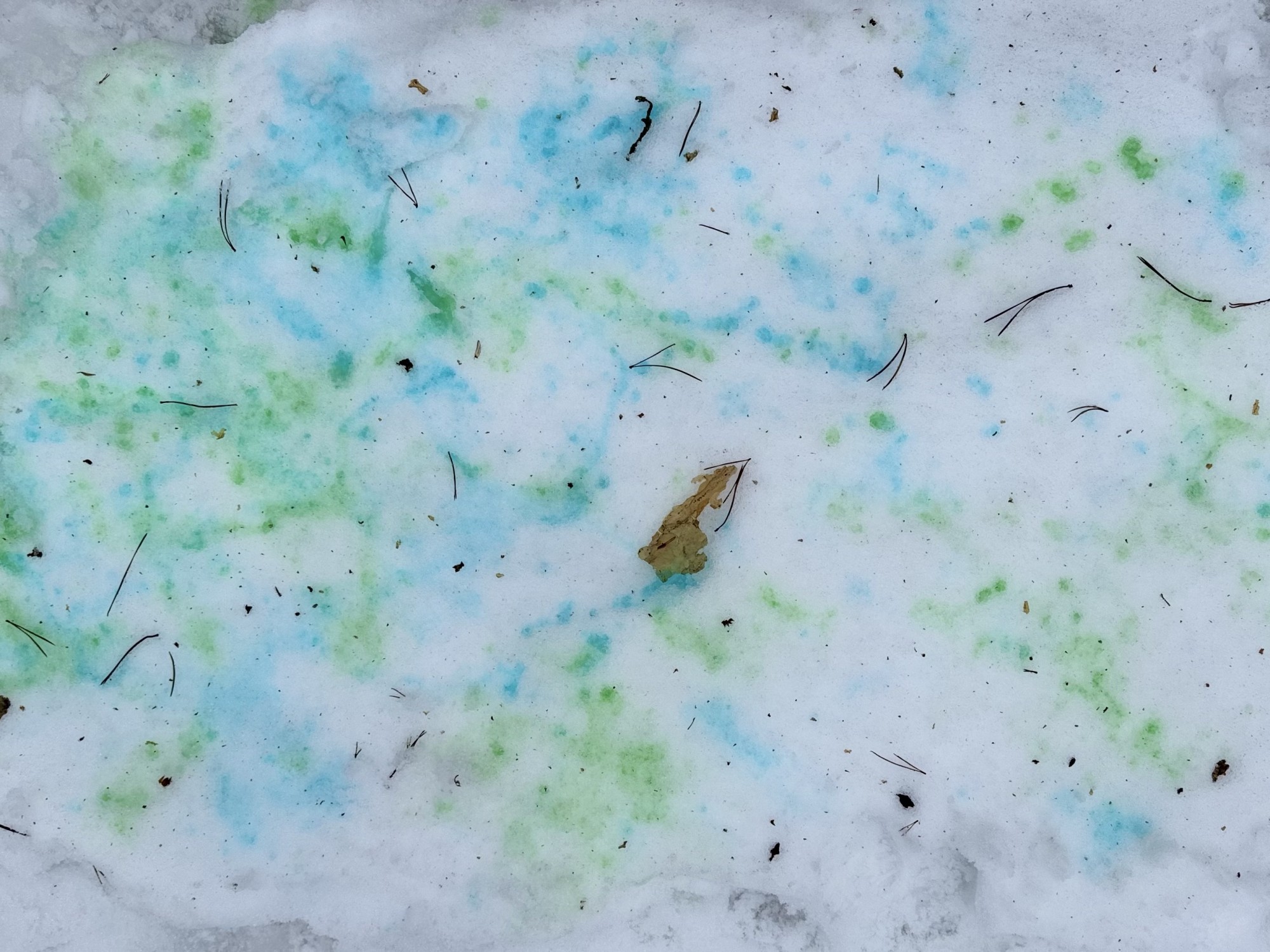 Grupas bērni (1,5 - 2 g.) ar pipetēm pilināju krāsainu ūdeni pagalma sniegā. Darbiņš bērniem šķita ļoti aizraujošs.