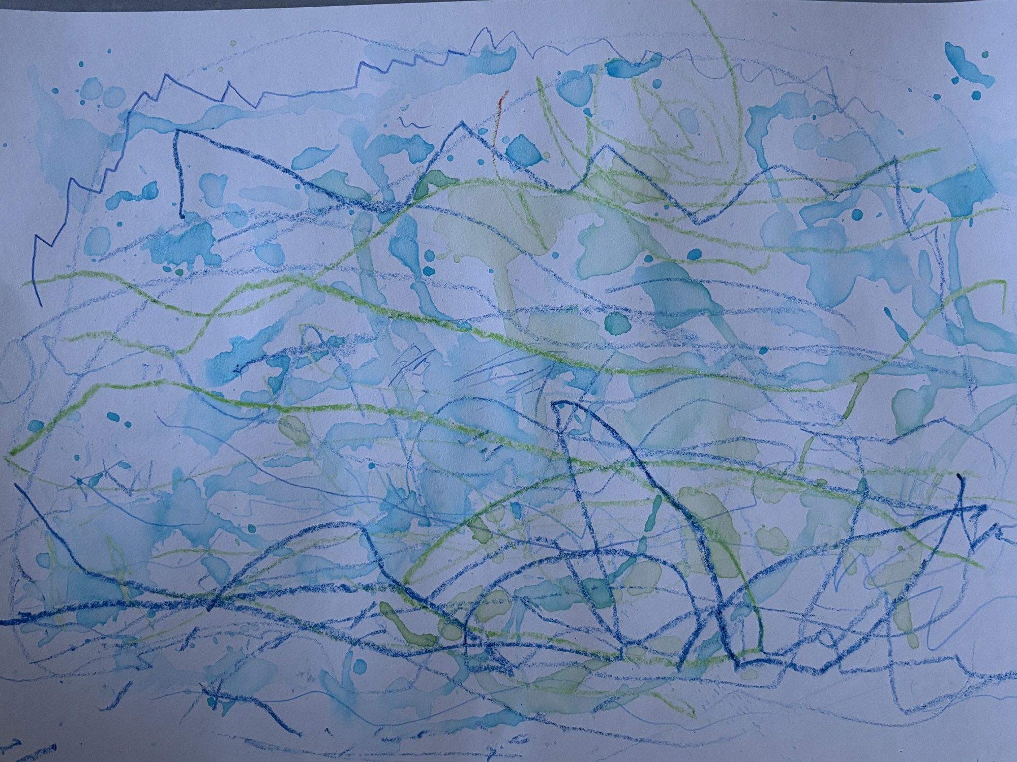 Mazie mākslinieki ar krītiņiem , zīmuļiem un krāsainu ūdeni mēģināja attēlot izkusušo pagalma sniegu.