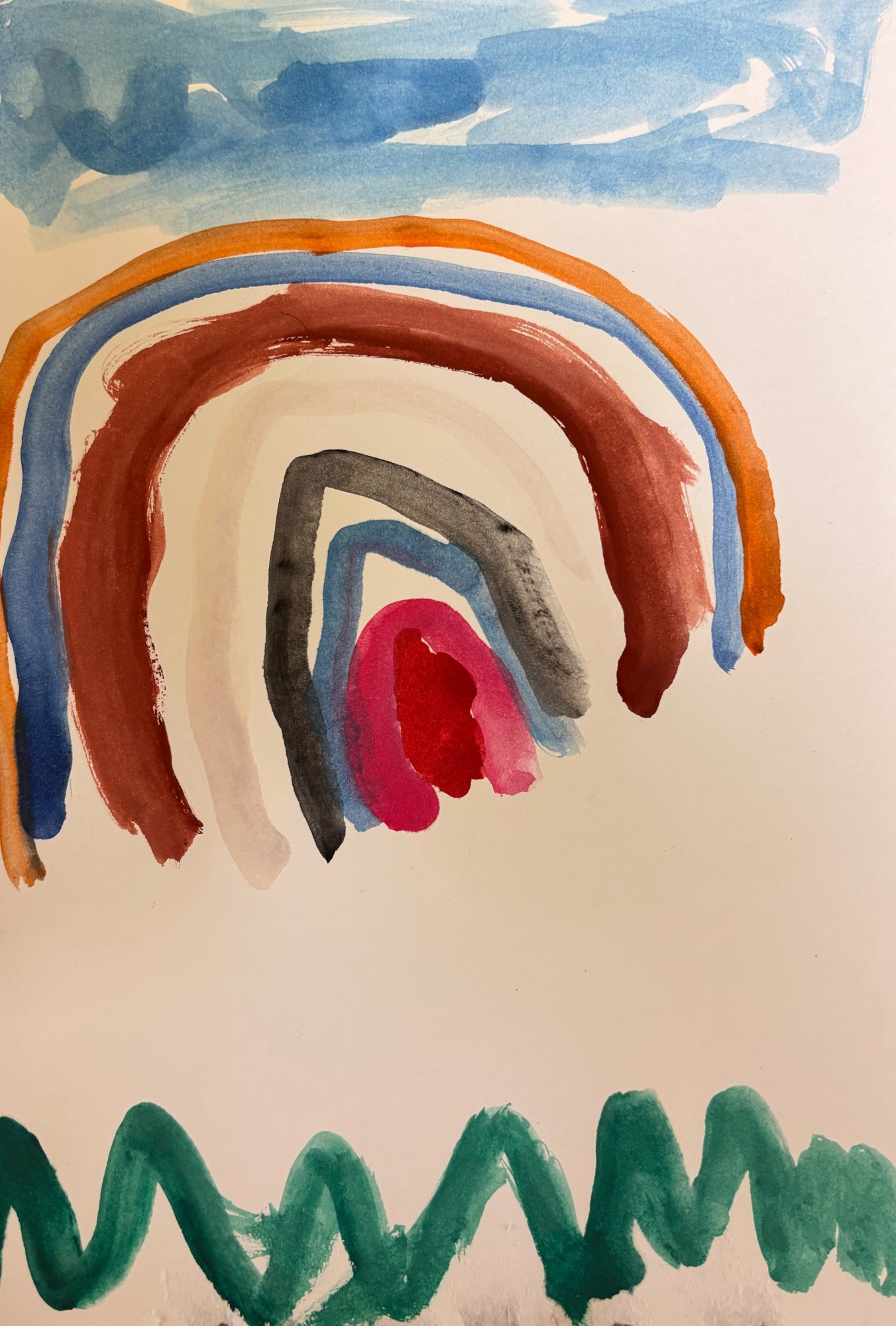 Pavasaris, koši zilas debesis un varavīksne.