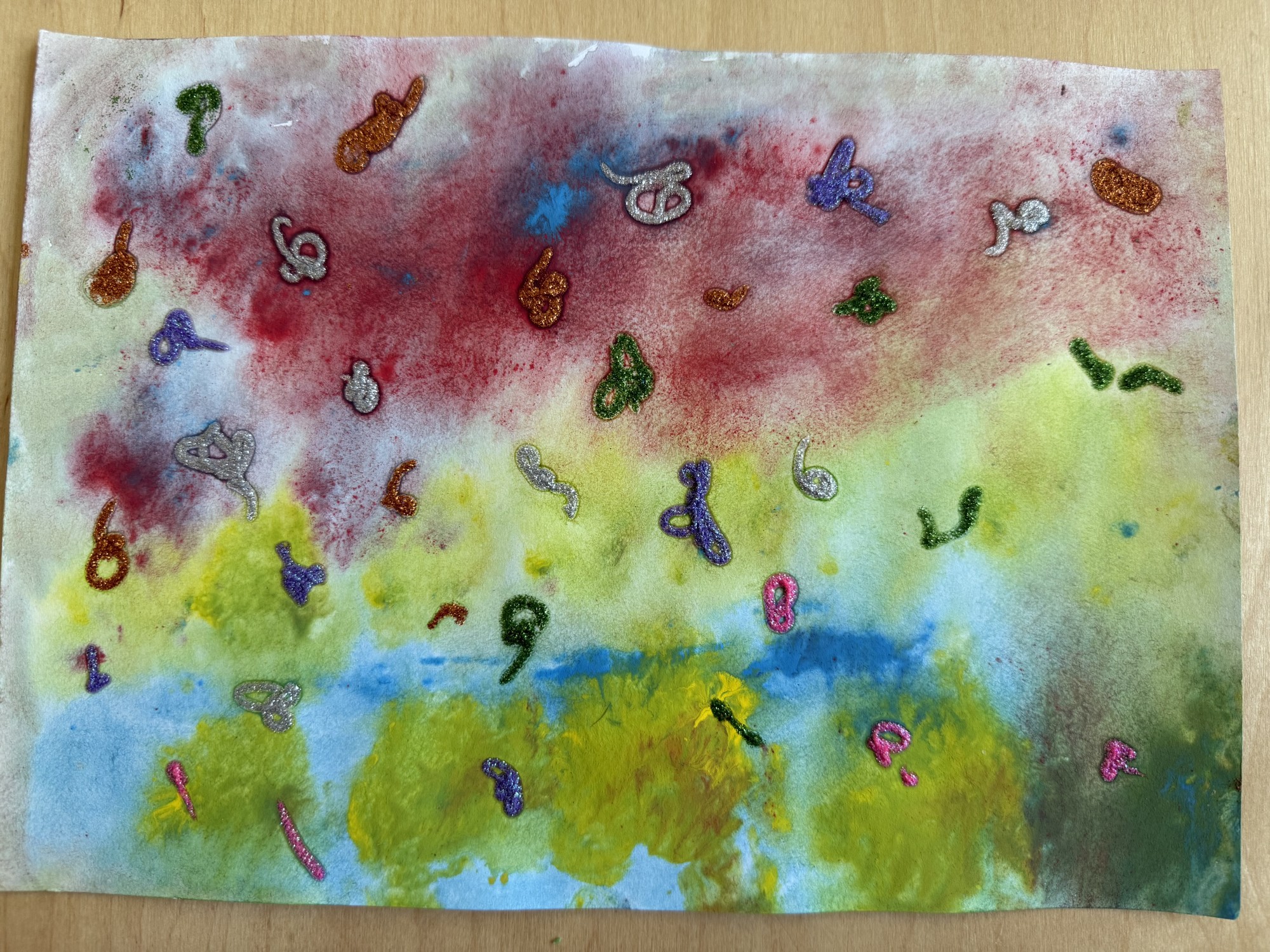 Guašas pludinājums ar spīdzīmuļa zīmējumu.