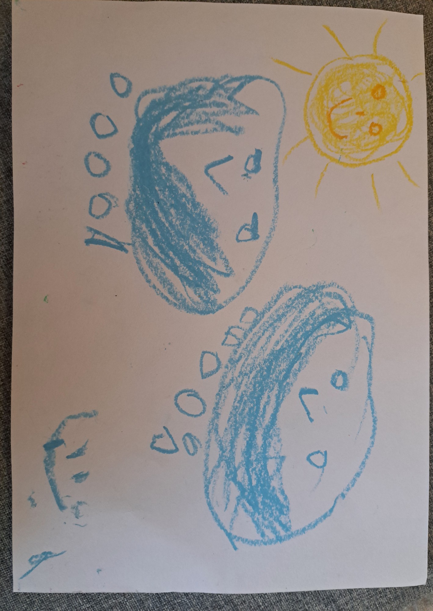 Satikušies divi ūdens draugi. Viņi piepūš vaigus un burbuļo, un pēc tam abi smejas.