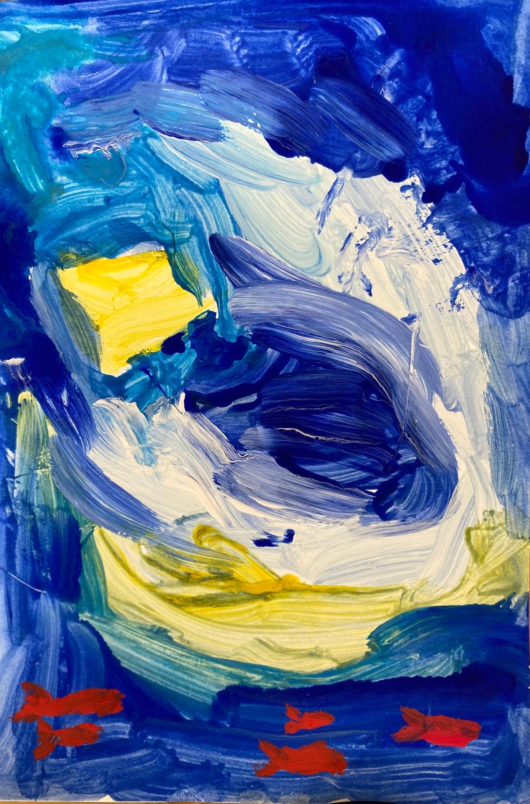 Zivtiņu ģimene jūrā naktī. #20422