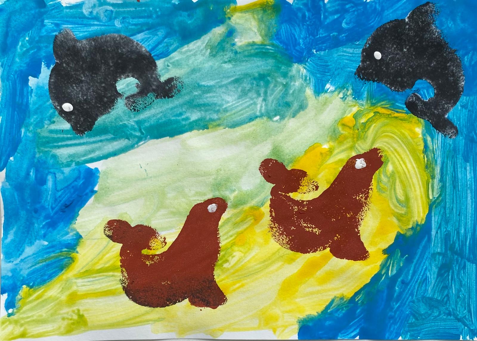 Dzīvnieku figūras gleznotas ar trafaretu.