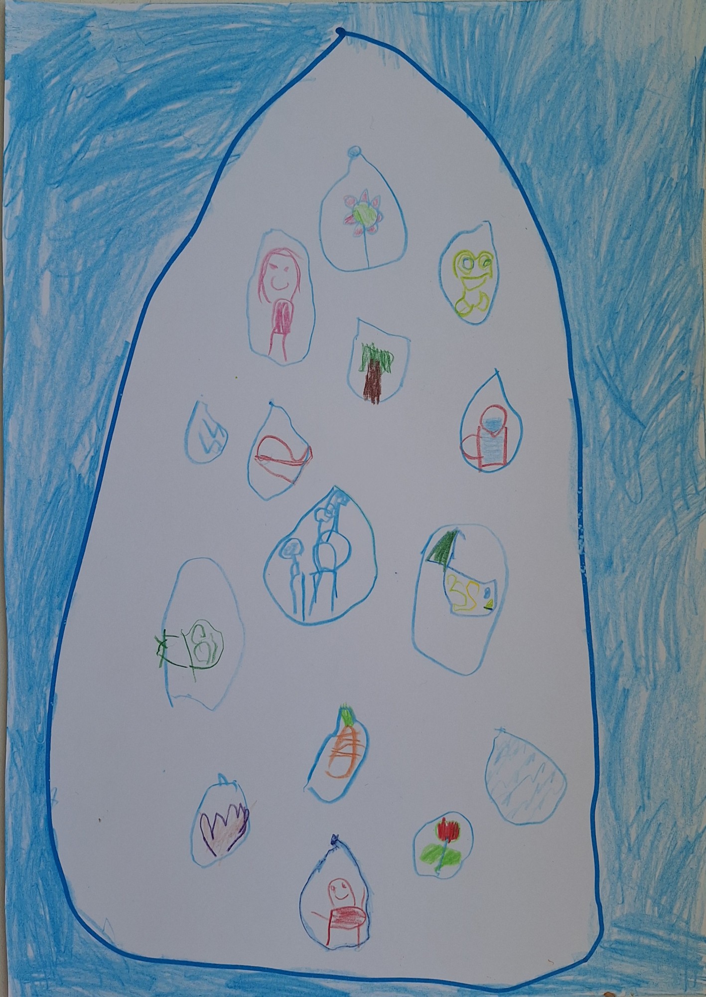 Lielajā ūdens lāsītē ir daudz mazu ūdens lāsīšu, kur ir iezīmēts, kam vajadzīgs ūdens.