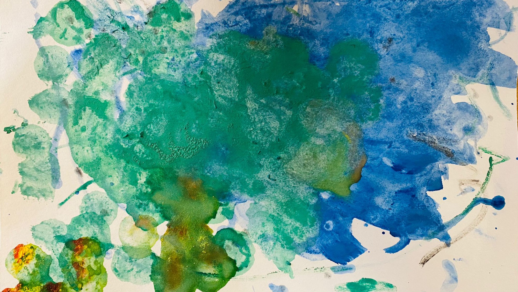 Zīmējumā attēlots mežs un ūdens.