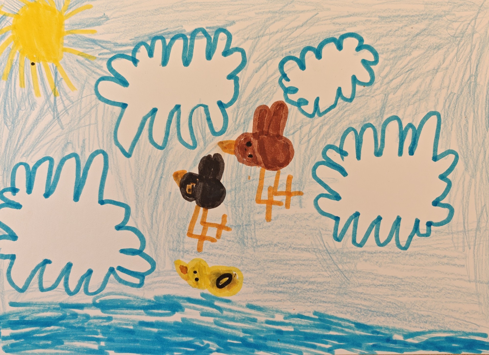 Putni, kad dzer tīru ūdeni, lido augstāk. Pīle nevar palidot, jo savainots spārns, tāpēc viņa peld.