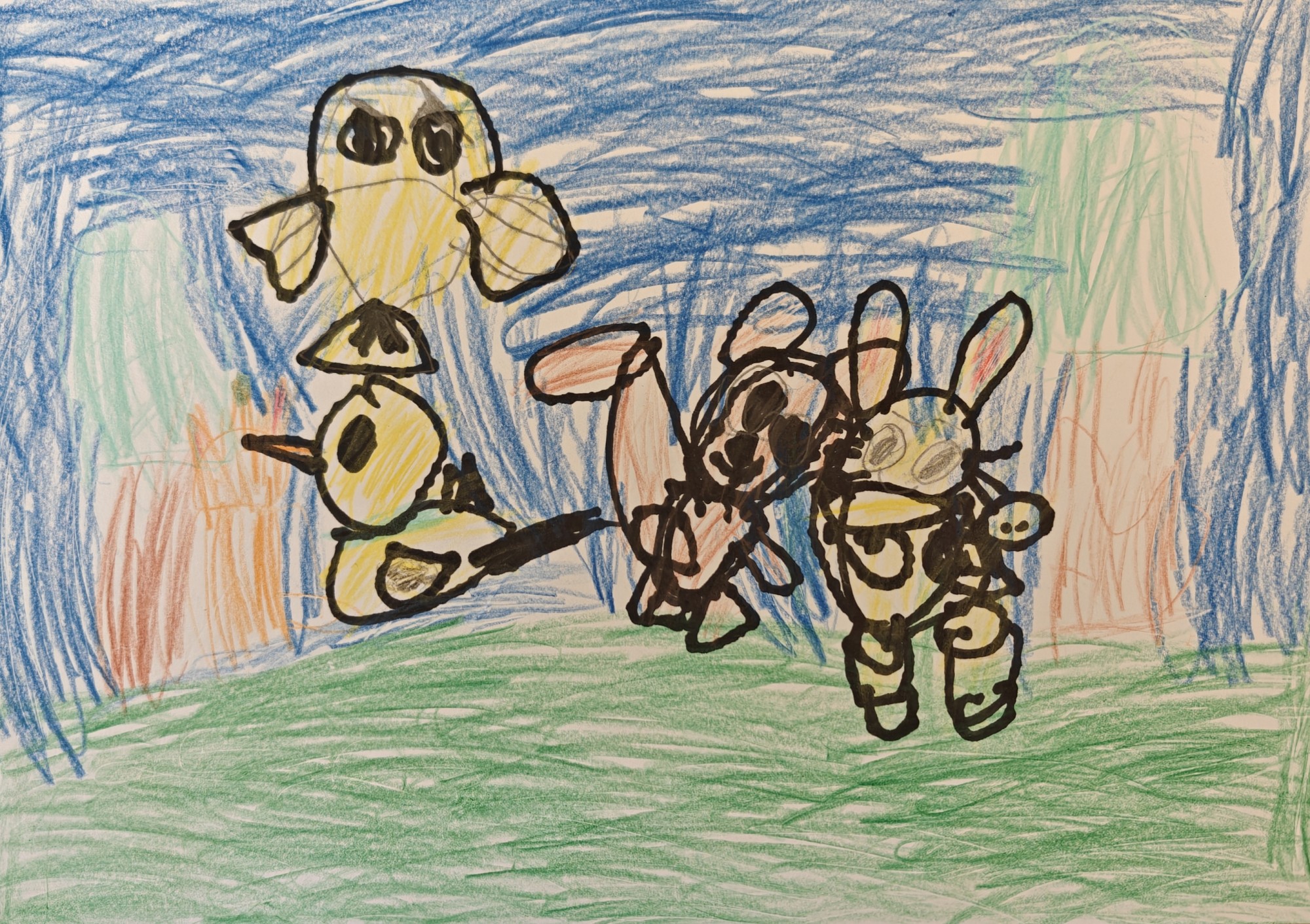 Zaķis un vāvere gāja dzert tīru ūdeni no dīķa. Pīle un putniņš sekoja citiem dzīvniekiem. Kad padzērās ūdeni, kliedza urā, urā!