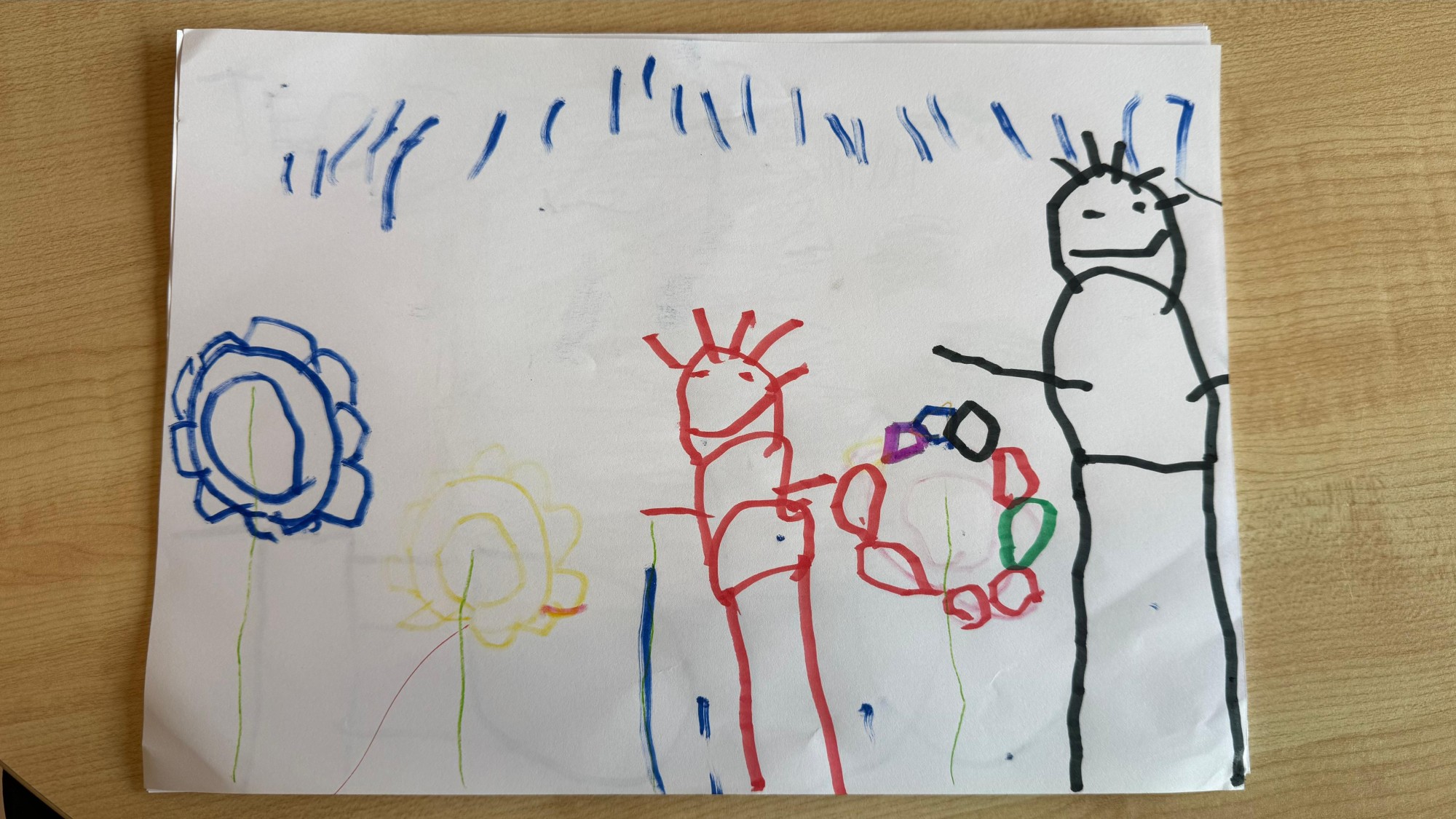 Bērns uzzīmēja, kam ir nepieciešams ūdens - puķēm, kas dara cilvēkus priecīgus.