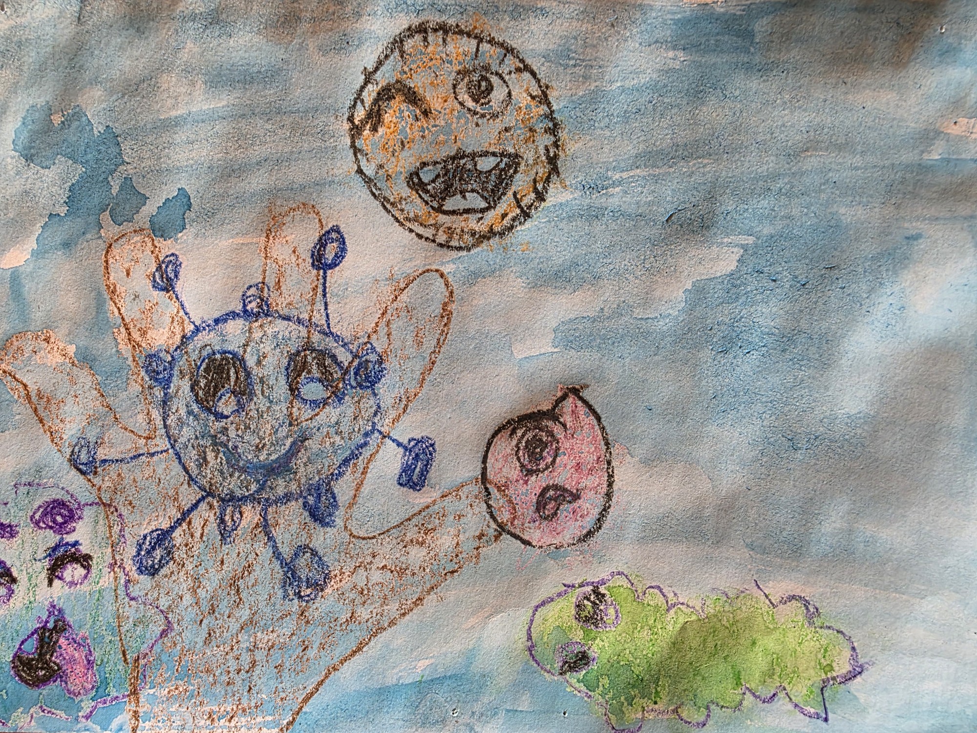 Bērns parāda cik svarīgi ir mazgāt rokas ar ziepēm un ūdeni. Lai tās būtu tīras un mēs būtu veseli.