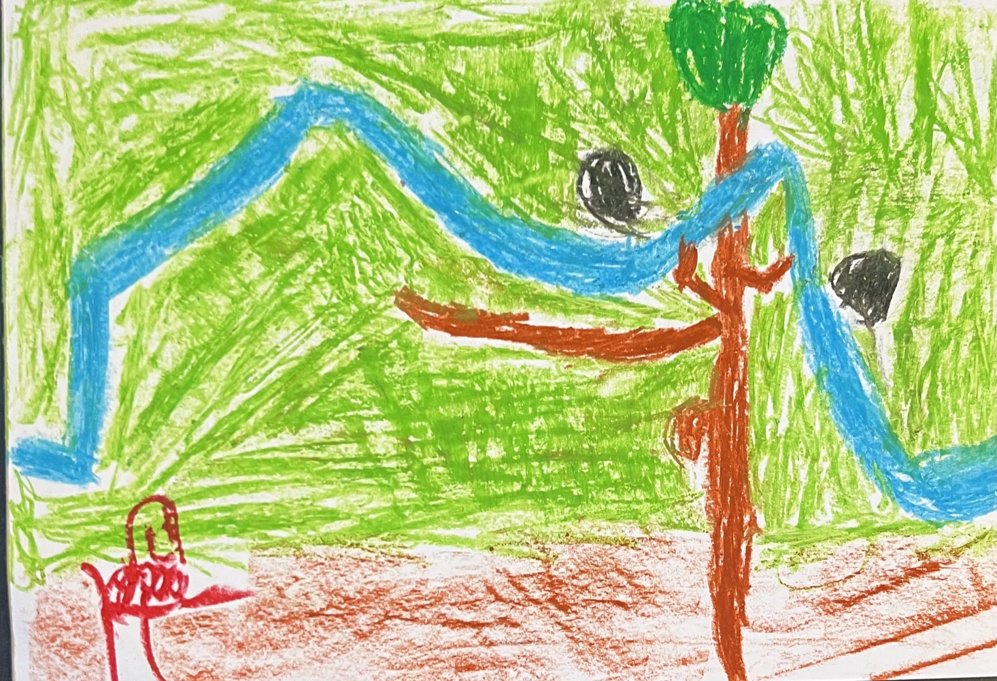 Mēs gājām mežā uz strautiņu, nēmām ūdeni pudelēs. Ūdens bija ļoti auksts