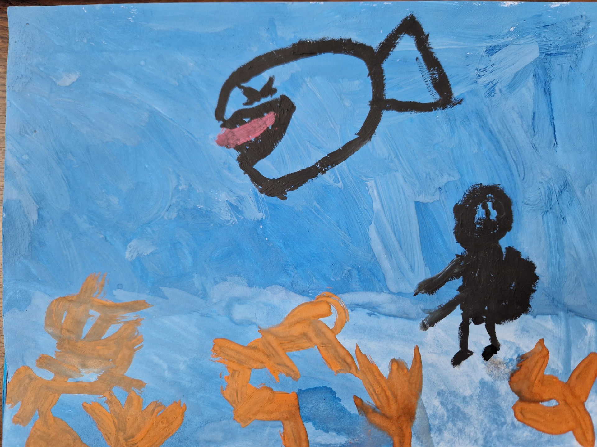 Valters ar šo zīmējumu vēlējās parādīt savu sapni - kādreiz nirt okeānā, lai izzinātu visus zemūdens brīnumus.