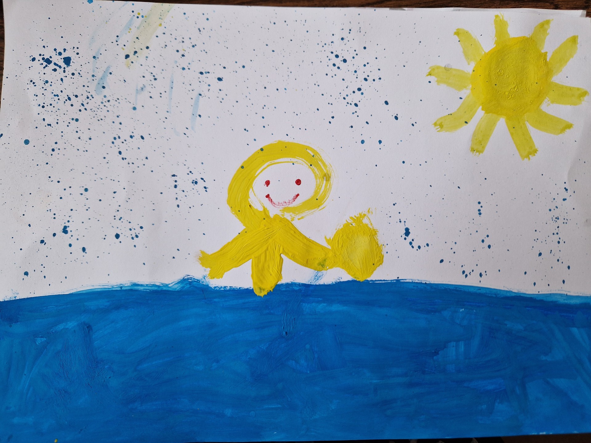 Annika zīmējumā attēlo jūru - savu peldi tajā. Kā viņa pati saka - peldoties jūrā, es pati kļūstu kā saulīte - smaidu un esmu vesela.