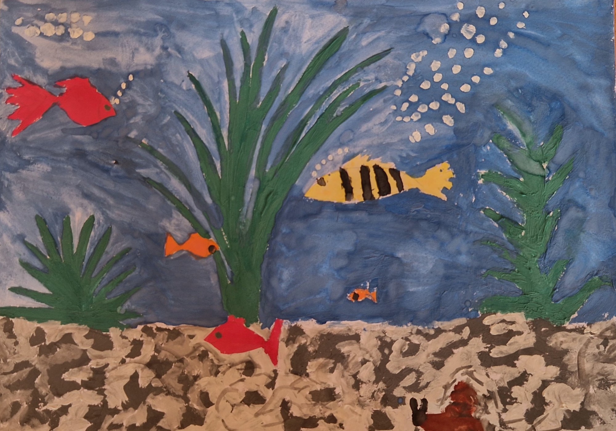 Bērna stāstījums par darbu: ja man būs akvārijs, es parūpēšos, lai tajā ir vienmēr tīrs ūdens un zivīm ir tajā labi.