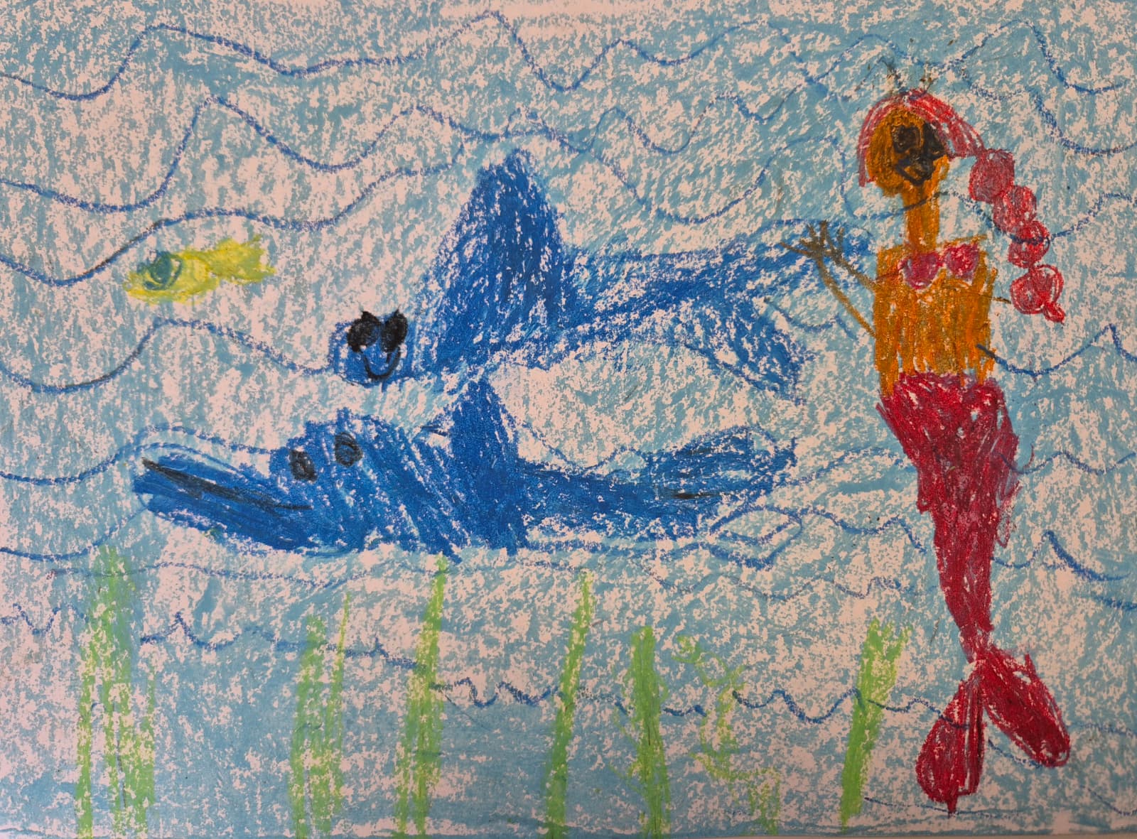 Zīmējums ir par labo ūdens pasaulē, draugi kopā apstādina haizivi, kura uzbrūk zelta zivtiņai. Dzīvosim draudzīgi, lai visi būtu laimīgi.