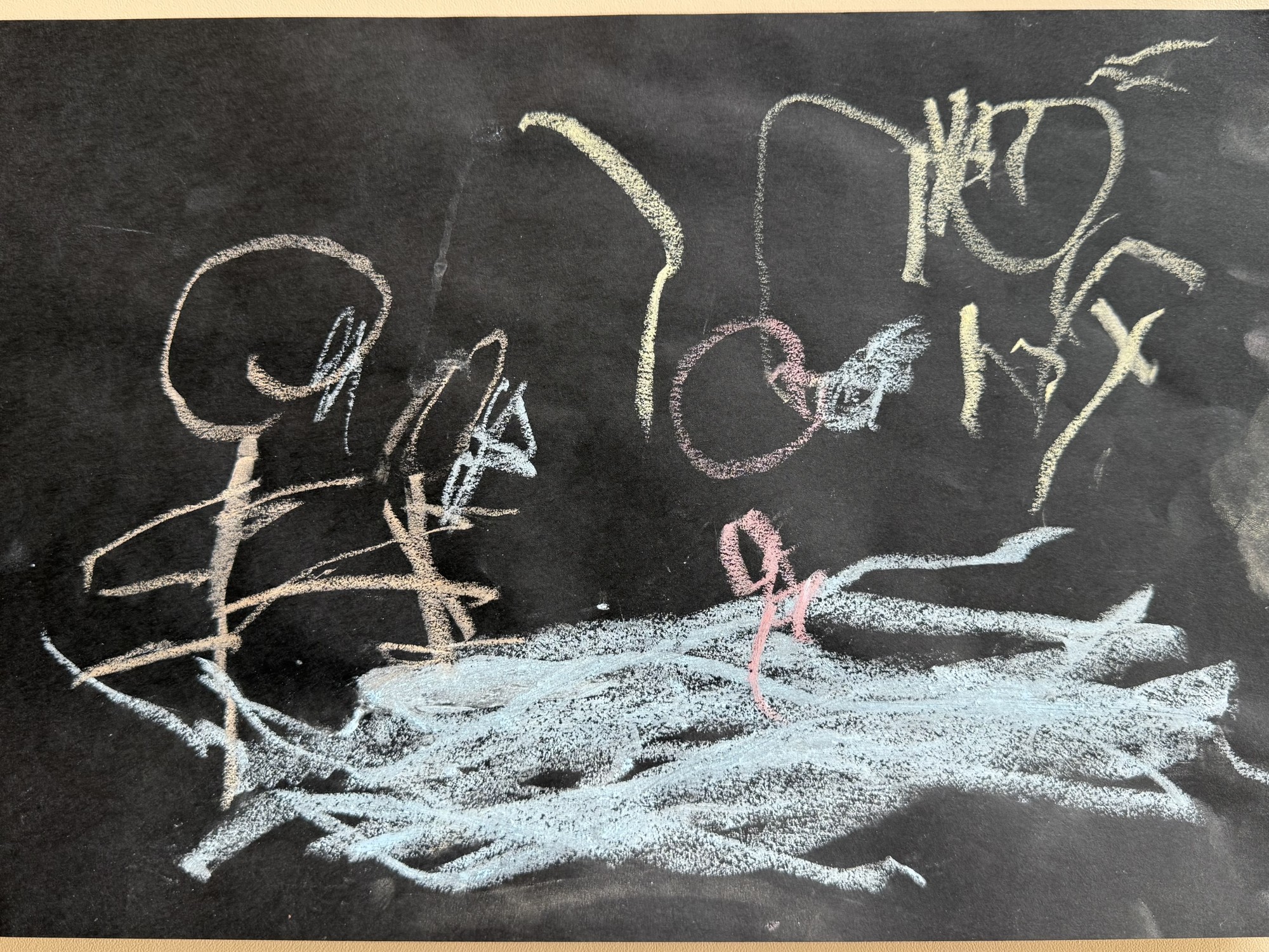 Meitene darbā attēloja ģimeni, kuri devušies vakara pastaigā, kļuva tumšs tāpēc ir uzmanīgi, jo apkārt ir ūdens un ir grūti redzēt. Ūdens ir draugs, tajā var arī peldēt, tikai vienmēr ar mammu vai tēti un dienas laikā, jo tas ir droši.