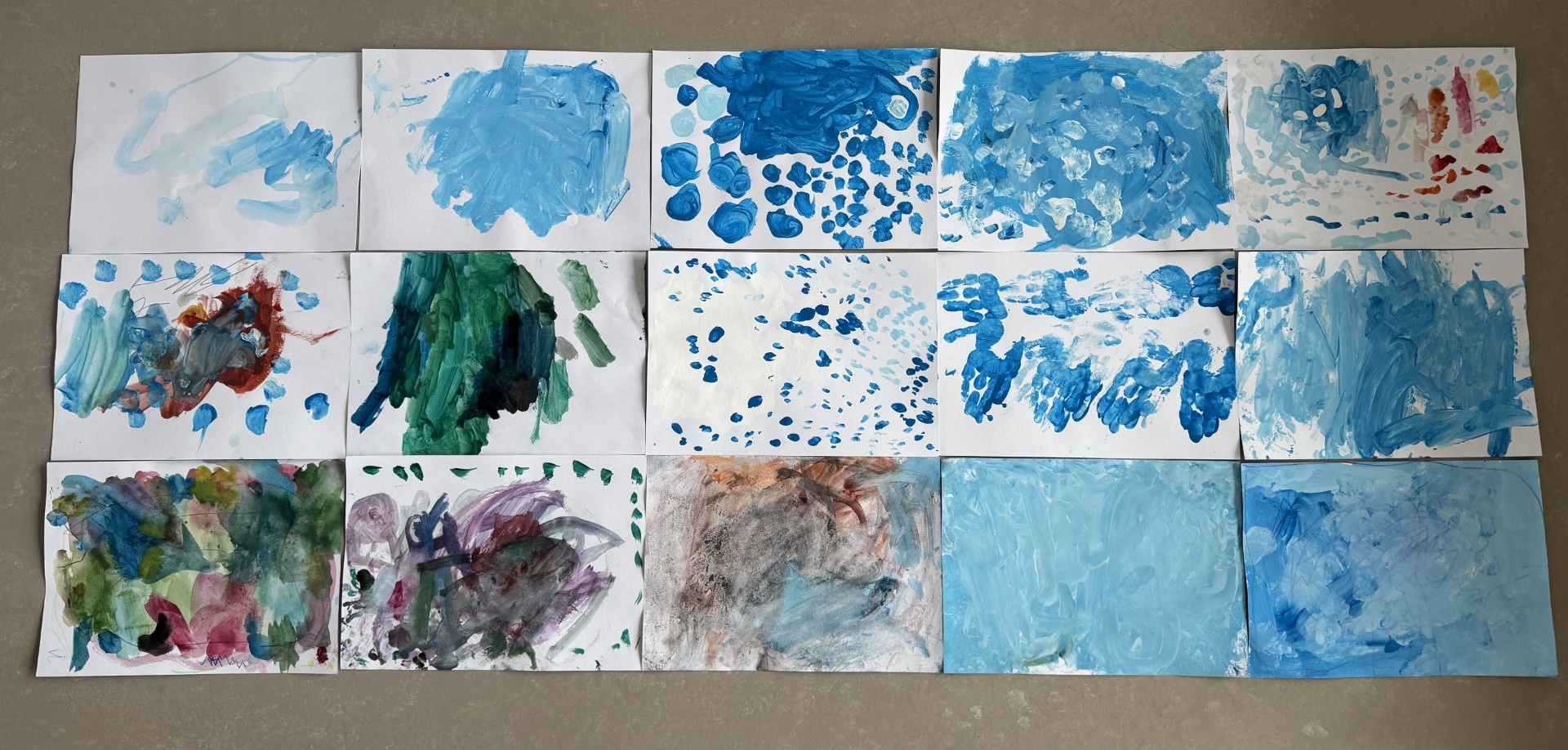 Darbos redzamas lietus lāses, mākoņi, jūra, ūdens viļņi, ūdens straumes, ūdens krājumi ledū un sniegā, zeme, ūdens tvaiks u.c. Ūdens aprites daba elementi. Bērni izmantoja zilas krāsas dažādus toņus, baltu krāsu, kā arī dabas krāsas, kas atspoguļo ūdens klātbūtni vidē. Bērnu darbi ir spontāni, emocionāli un atšķirīgi, parādot katra bērna redzējumu un sajūtas par ūdeni.