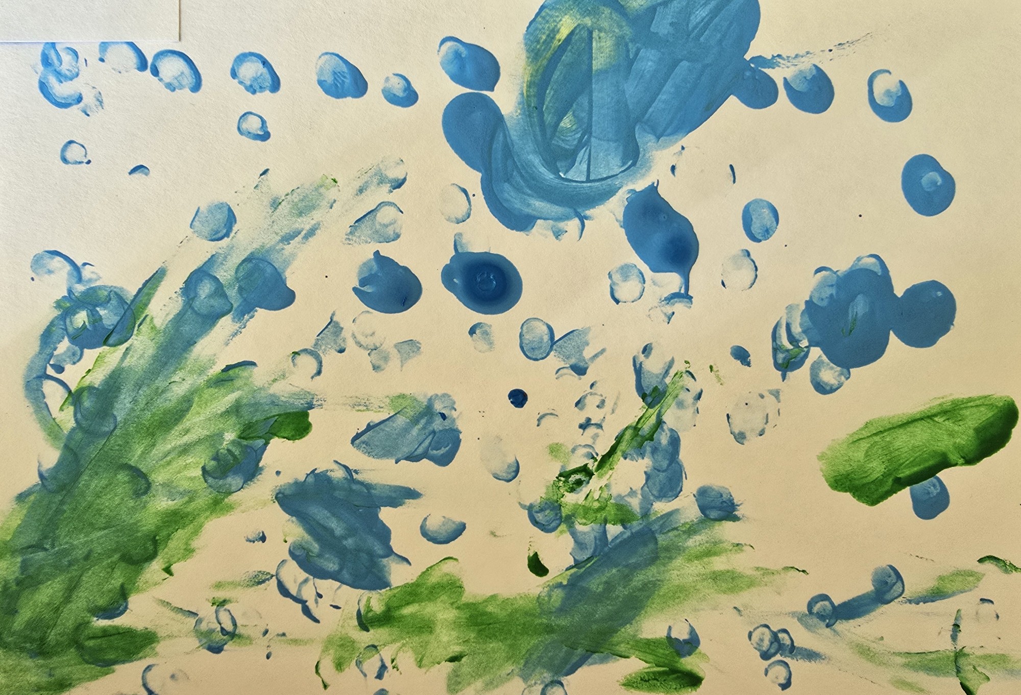 Darbā attēlots lietus, saule un zāle - dabas elementi, kas rada dzīvību. Lietus pilieni simbolizē ūdeni kā svarīgu resursu visai dzīvajai dabai. Saule un zaļā zāle parāda - kā ūdens palīdz augt un attīstīties.