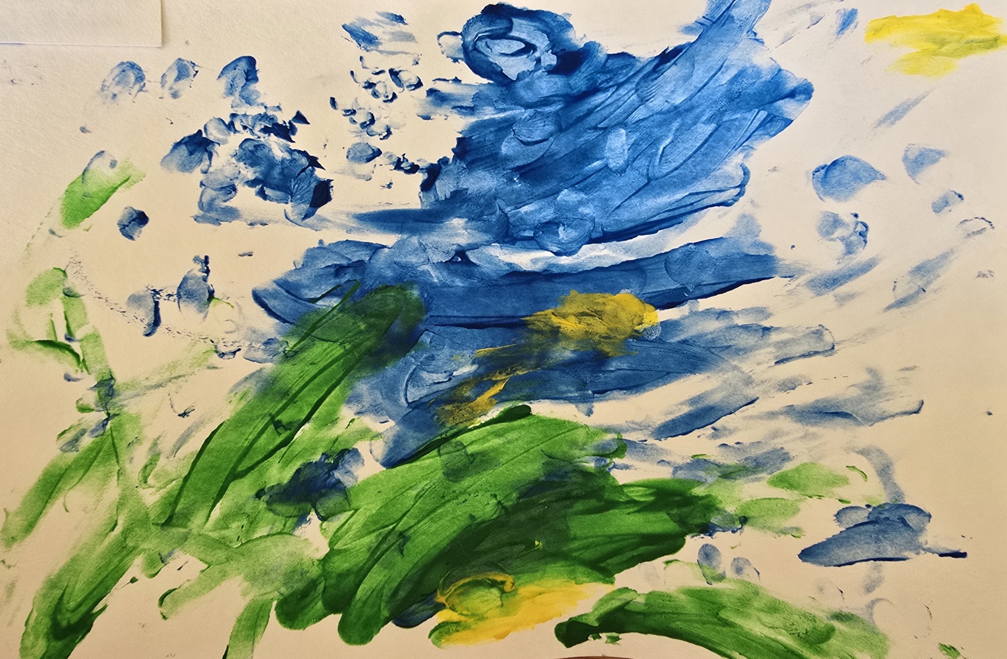Darbā attēlots lietus, saule un zāle - dabas elementi, kas rada dzīvību. Lietus pilieni simbolizē ūdeni kā svarīgu resursu visai dzīvajai dabai. Saule un zaļā zāle parāda - kā ūdens palīdz augt un attīstīties.