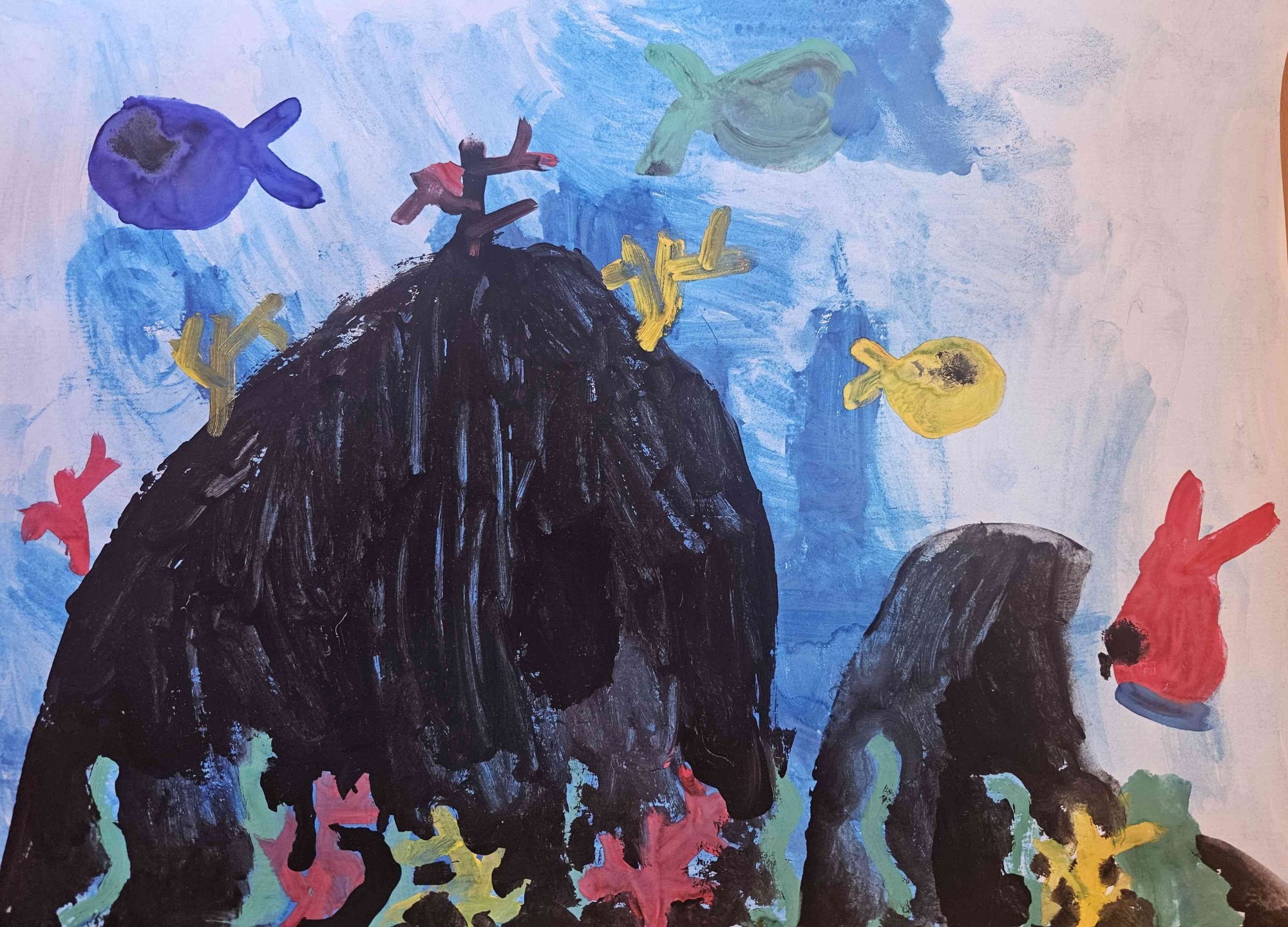 Ūdenī var ieraudzīt jūraszāles, zivis, koraļļus un lielus akmeņus.