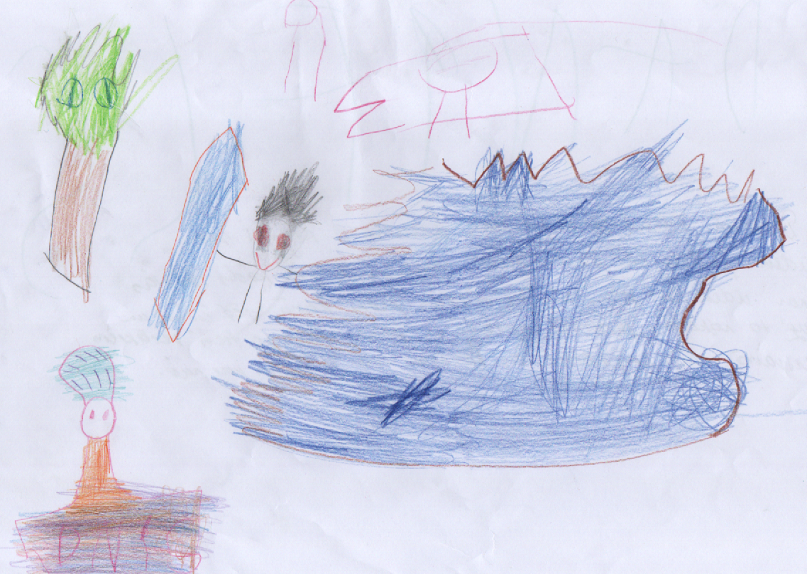 Dzeramā ūdens ezers, pie kura Daniels ir ieguvis sev ūdens pudeli un kļuvis par ūdens pavēlnieku, lai varētu dzīvot priecīgs. Zīmējuma augšā kāds kaujas par ūdeni, bet viens cilvēks dodas prom. Kokā sēž čūska un uz to noskatās, savukārt apakšā ir zēna tētis, jo tieši vecākiem visvairāk rūp, kas notiek ar bērniem- vai viņiem ir ūdens vai nav!