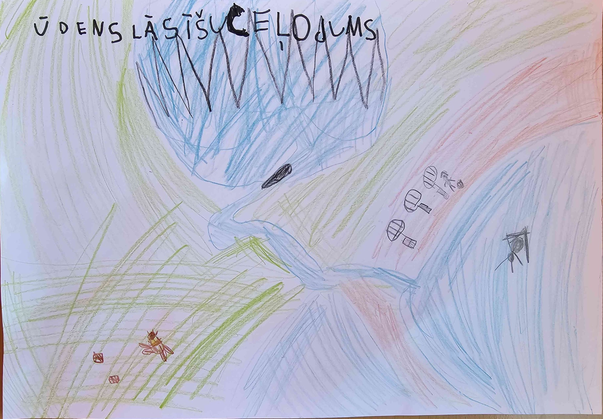 Mazās ūdens lāsītes iekrīt upē un sāk tecēt pa upi. Brauca kuģis un tie ieraudzīja bebru, kurš skrēja pēc kokiem.