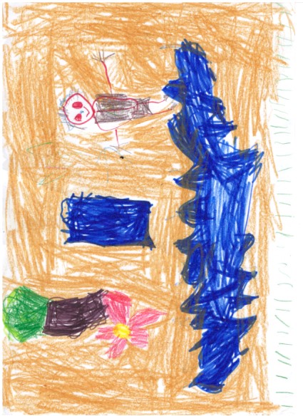 Es uzzīmēju upi, jo ūdens vajadzīgs cilvēkiem, zālei, kokam un puķītei.