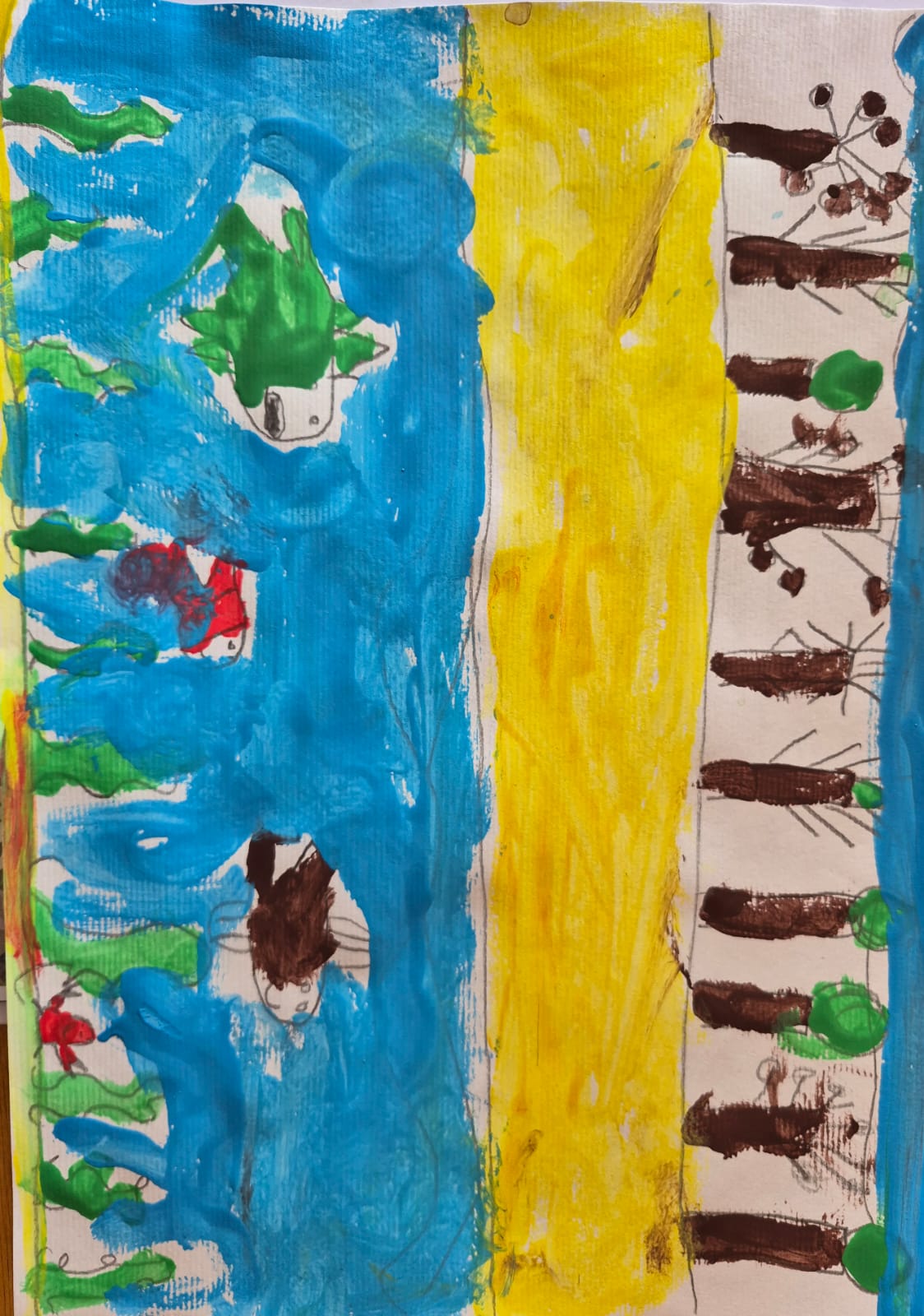 Manas zivtiņas ir priecīgas un peld zilā, tīrā ūdenī. Viņas spēlējas kopā un jūtas laimīgas.
