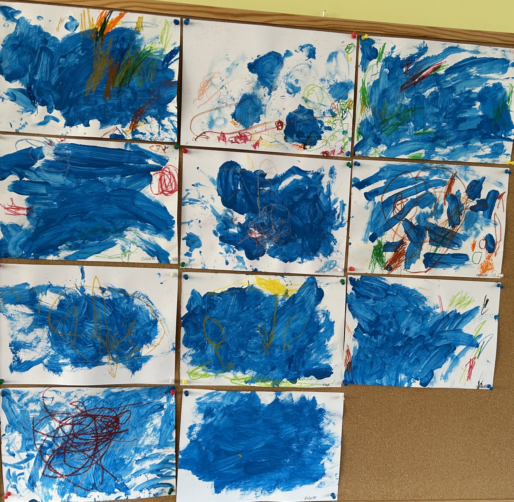 Pasaules ūdens dienā divgadnieki iepazina ūdens pasauli ar krāsām un kustību. Darbos dominē zilā krāsa, kas simbolizē jūru, okeānus, upes un ezerus. Bērni ar brīvām līnijām un krāsu laukumiem attēloja ūdens viļņus, lietus pilienus, straumes un zemūdens pasauli.