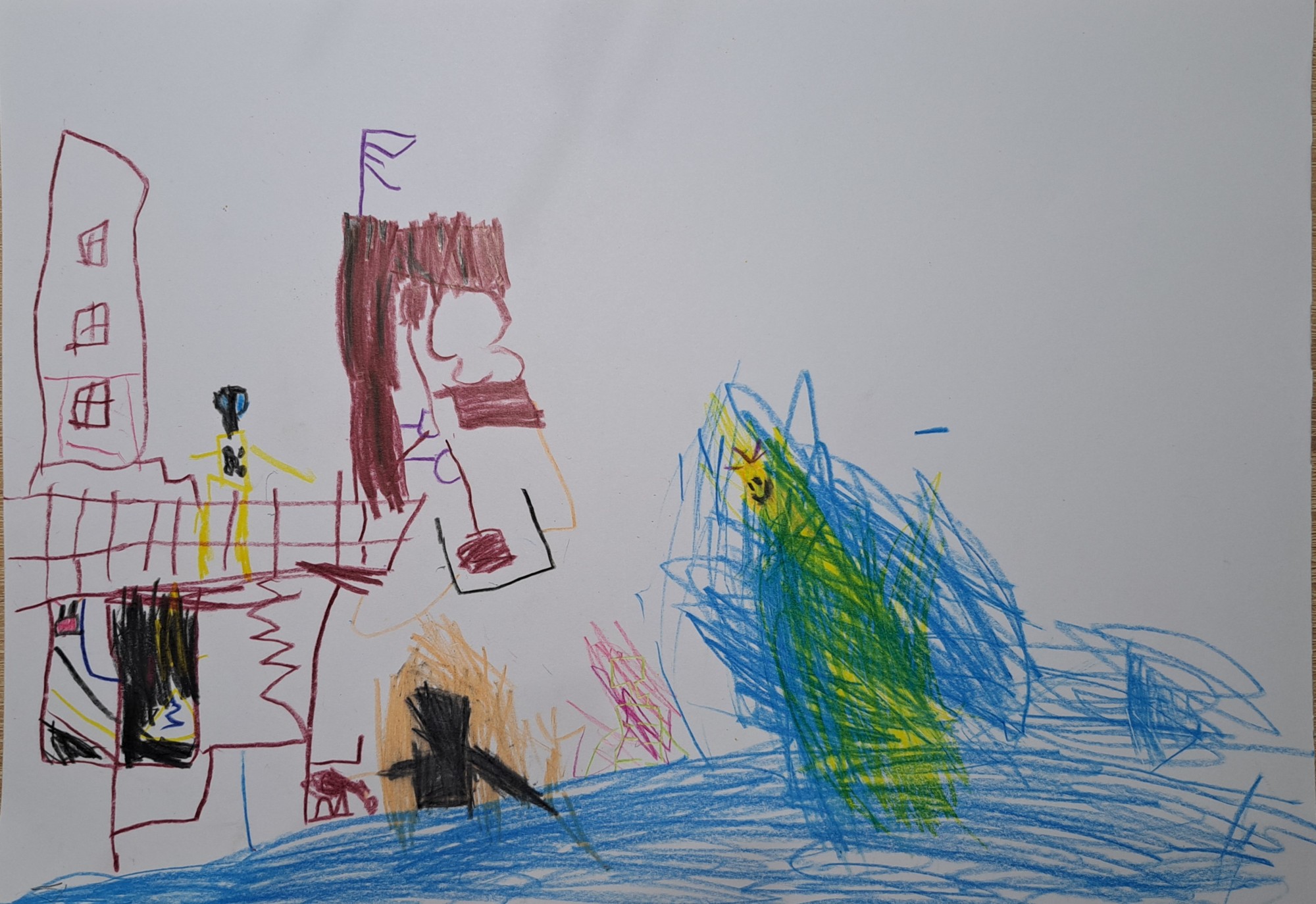 Ūdens mājā atrodas glābšanas laiva, kura tiek nolaista ūdenī, jo cilvēks peldas tuvumā ūdens mājai (elektrostacijai)
