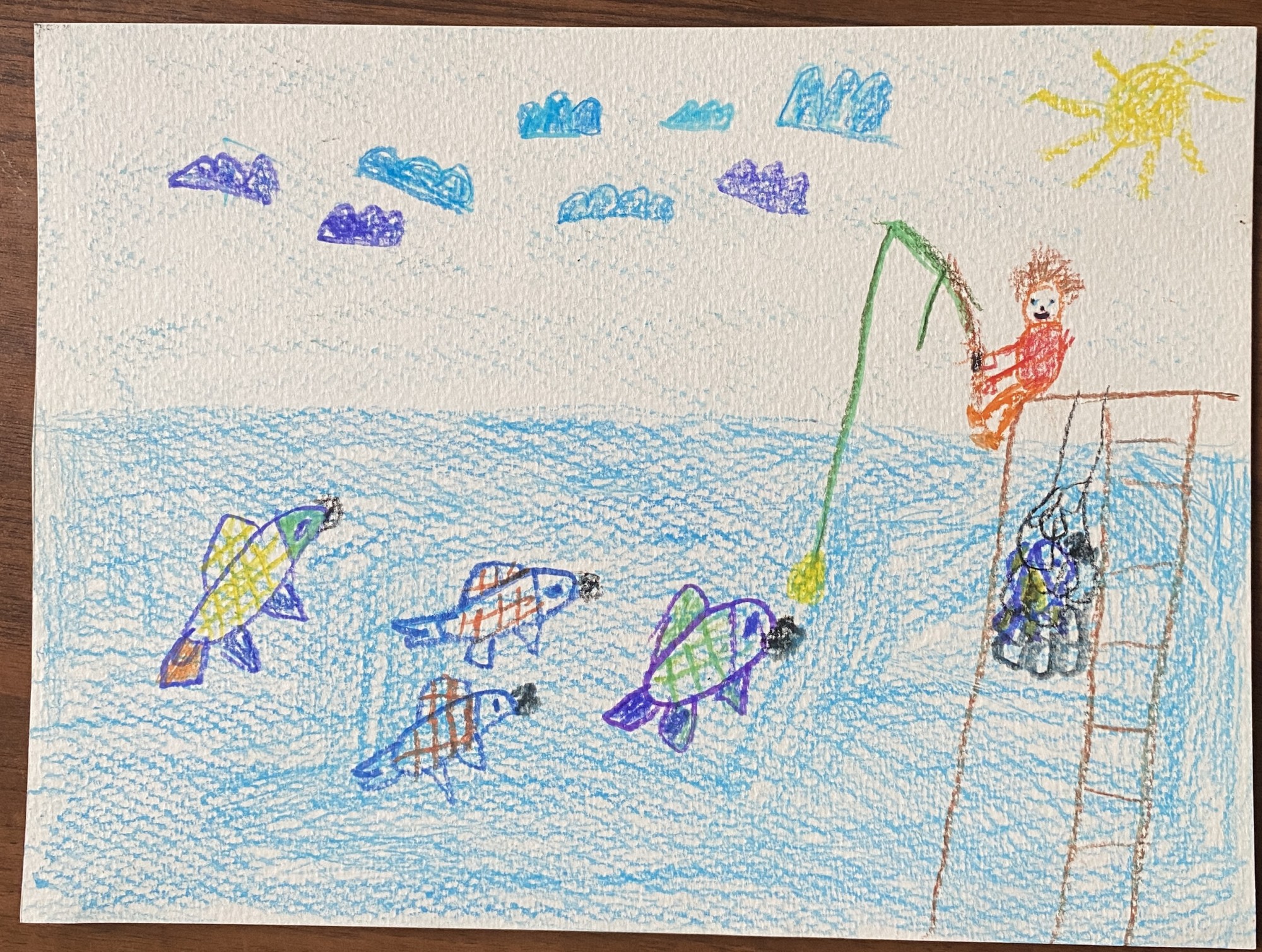 Upē dzīvo dažādas zivis. Viņām patīk tīrs ūdens. Bez ūdens zivis ātri iet bojā. Man te ļoti patīk, darboties un tētis mani vēro kā man veicas.