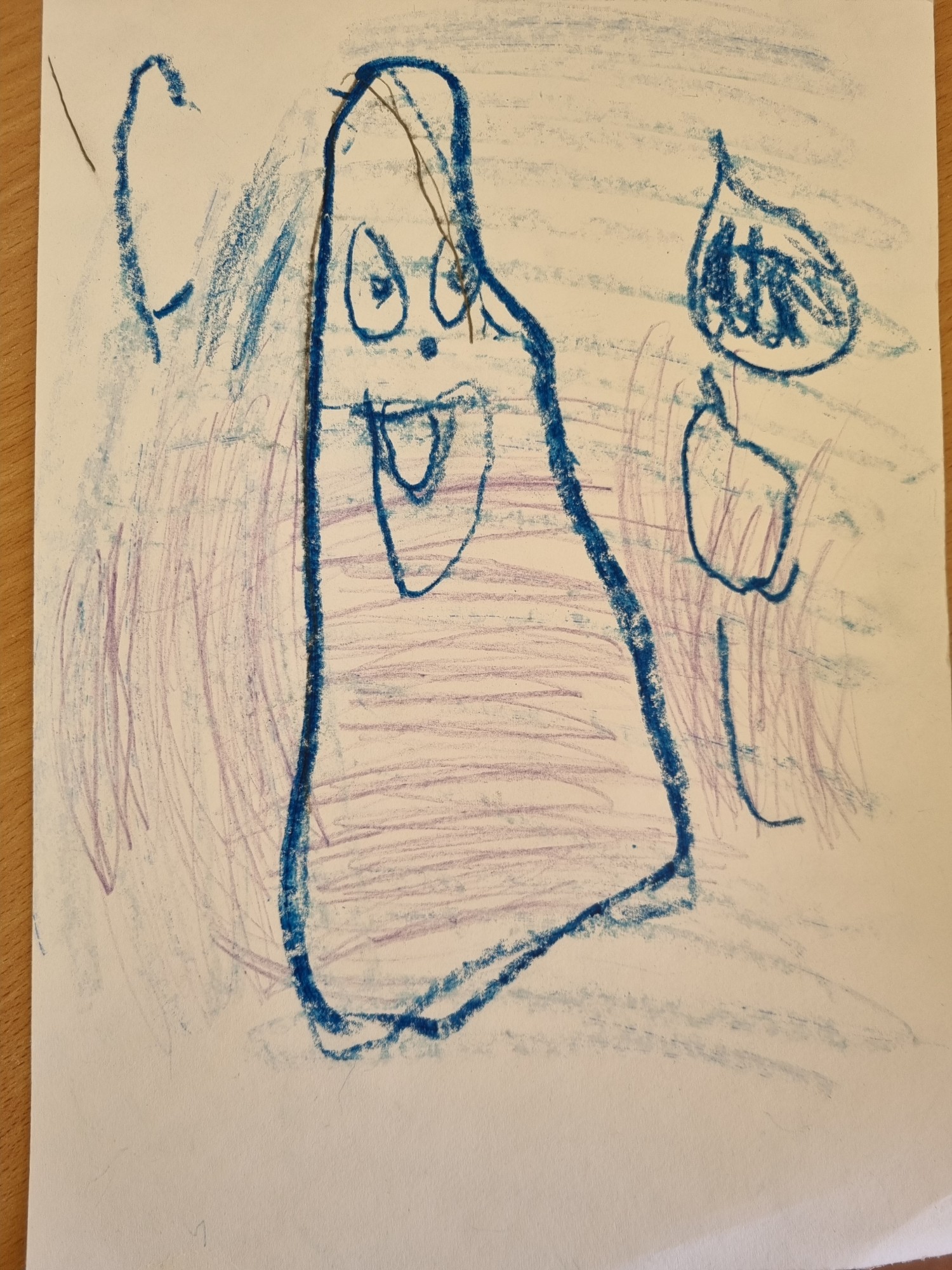Ar krītiņiem un krāsaino zīmuli. Pati smaidu par savu stāstu.