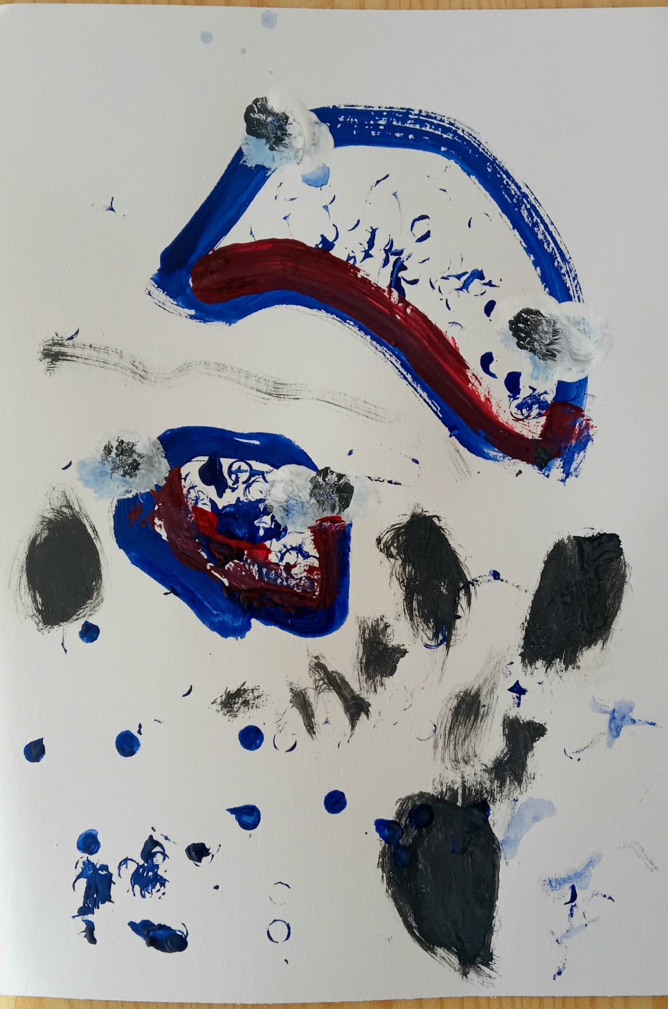 Darbs tapis guaša tehnikā, bērnudārza nodarbības laikā, izmantojot otas un salmiņus punktu veidošanai, kas bērniem ļāva eksperimentēt ar faktūrām un radīt dzīvas, emocionālas ūdens lāsītes.