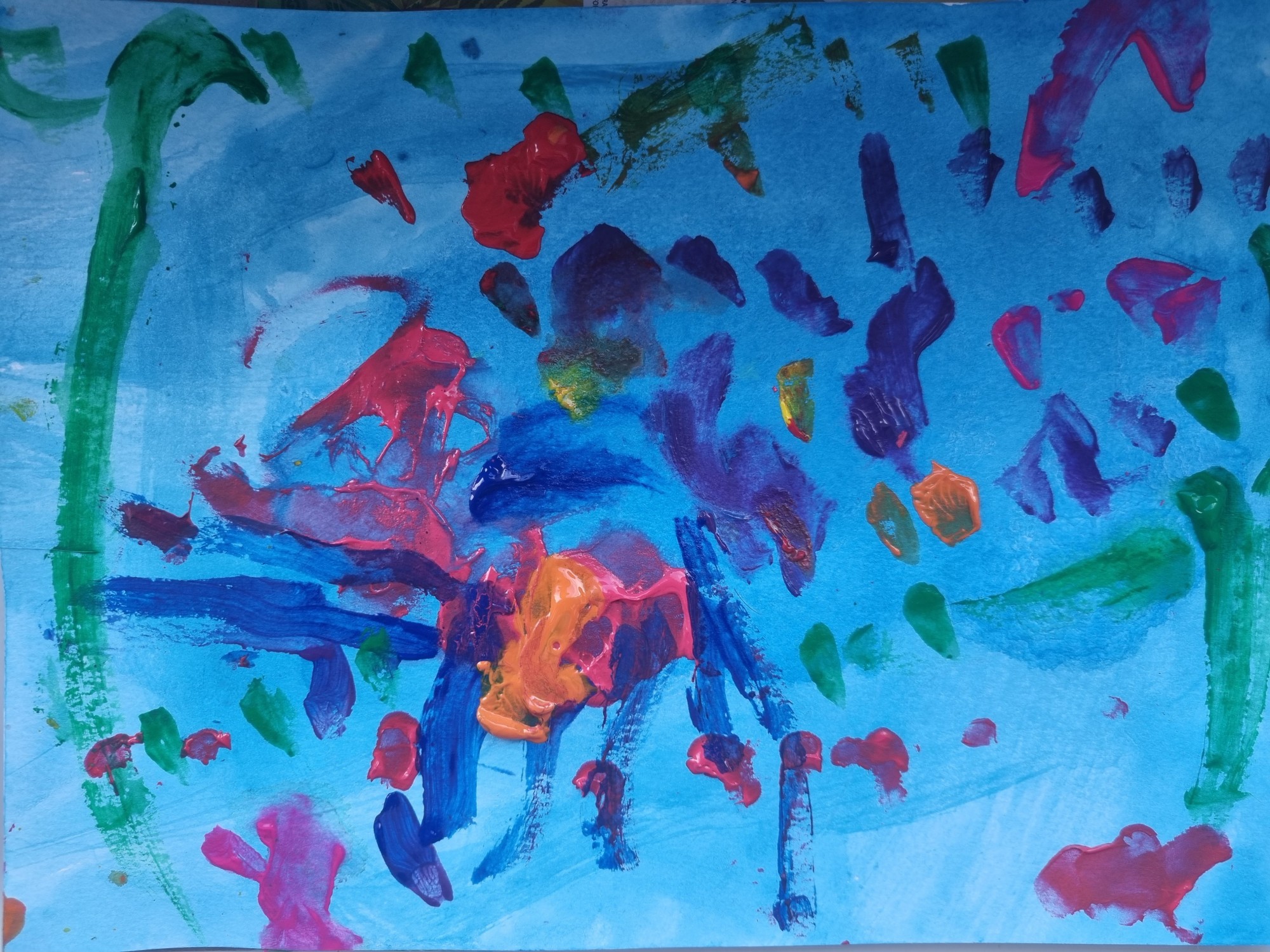 Zīmējumā redzama krāsaina un kustīga zemūdens pasaule, kur virpuļo dažādas zivis starp zaļajām ūdenszālēm. Tajā ir redzami arī koraļļi. burbulīši un dažādi jautri noslēpumi.